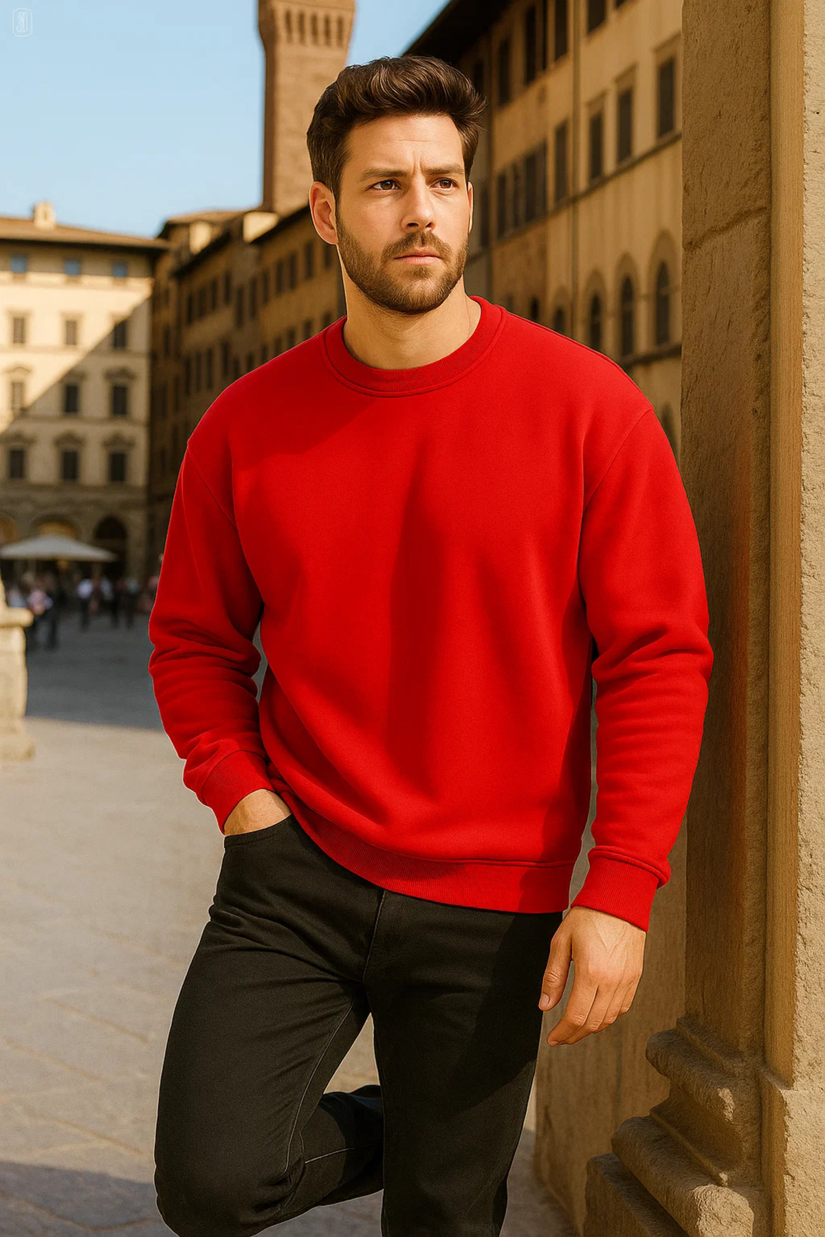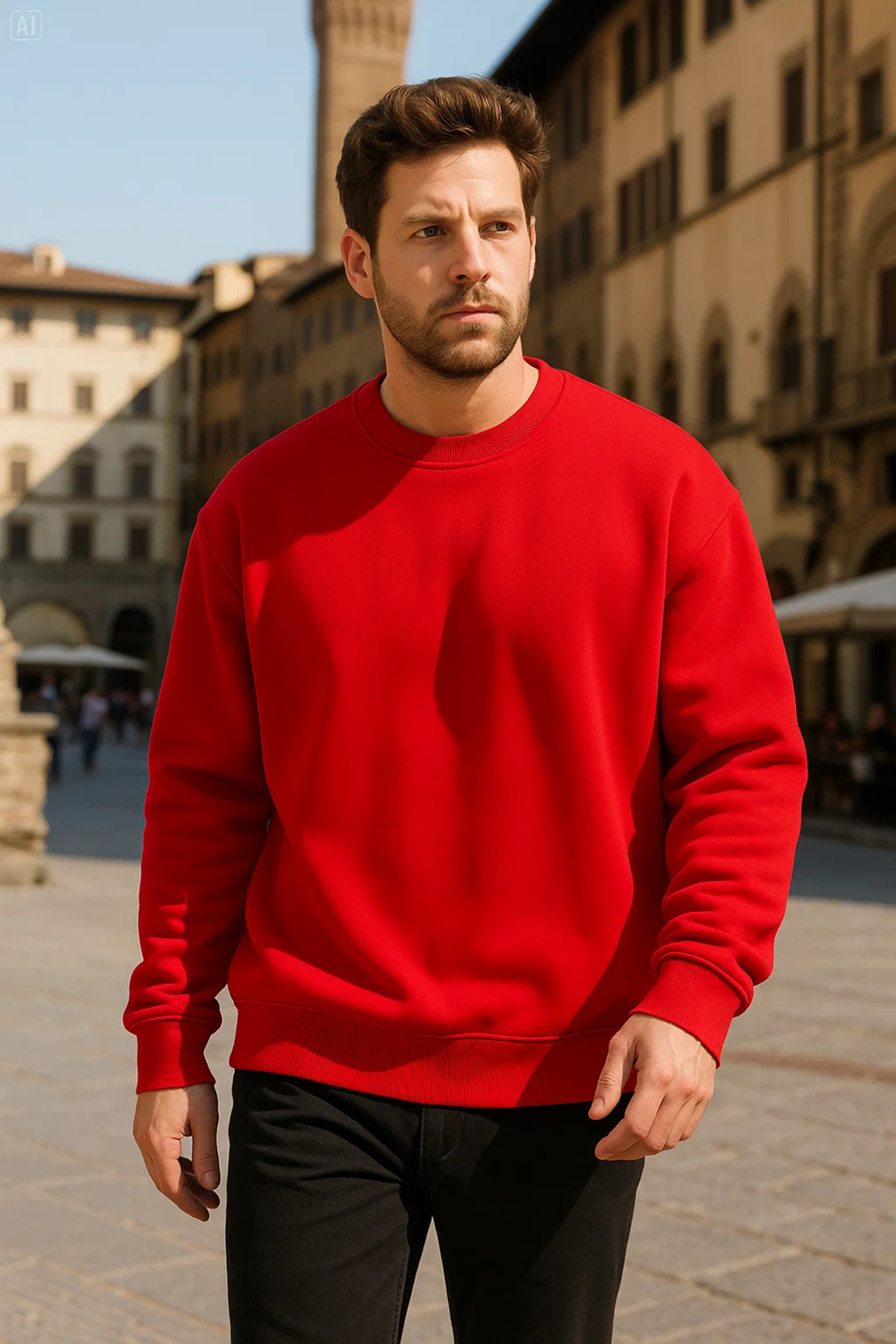 Unisex Kışlık Rahat Uzun Kırmızı Bol Kazak Unisex Kışlık Rahat Uzun Kırmızı Bol Kazak COMBINE-SWT.0026-3 2XL