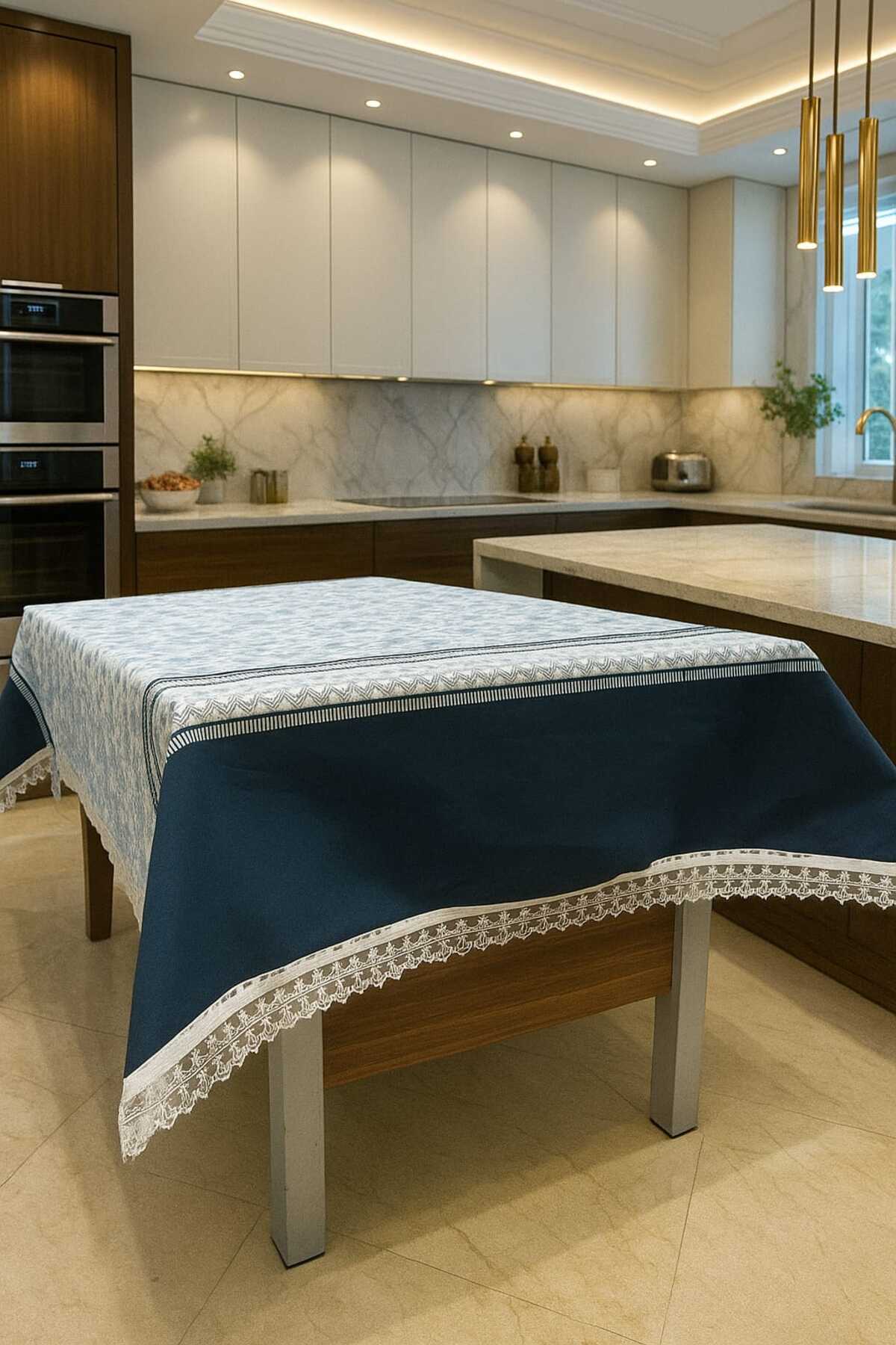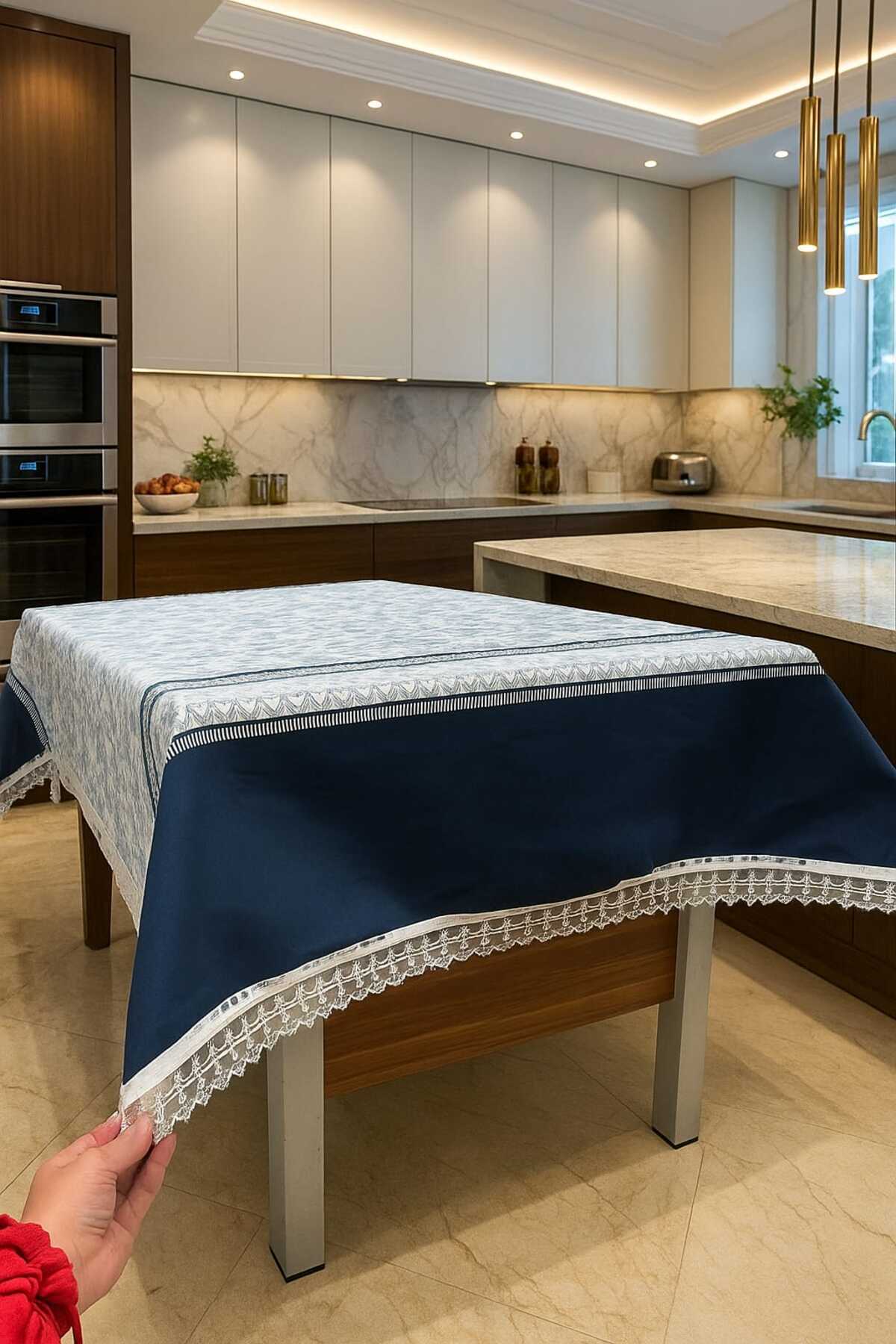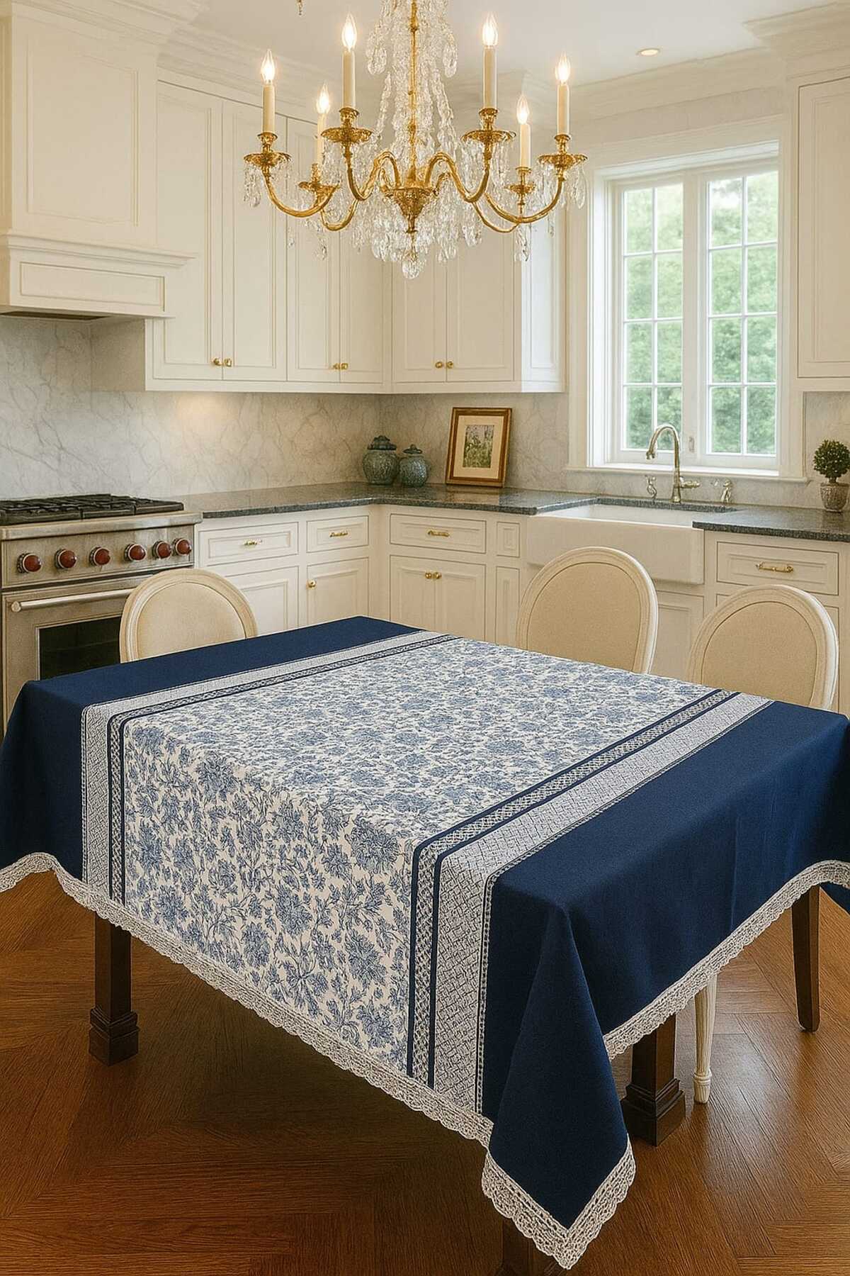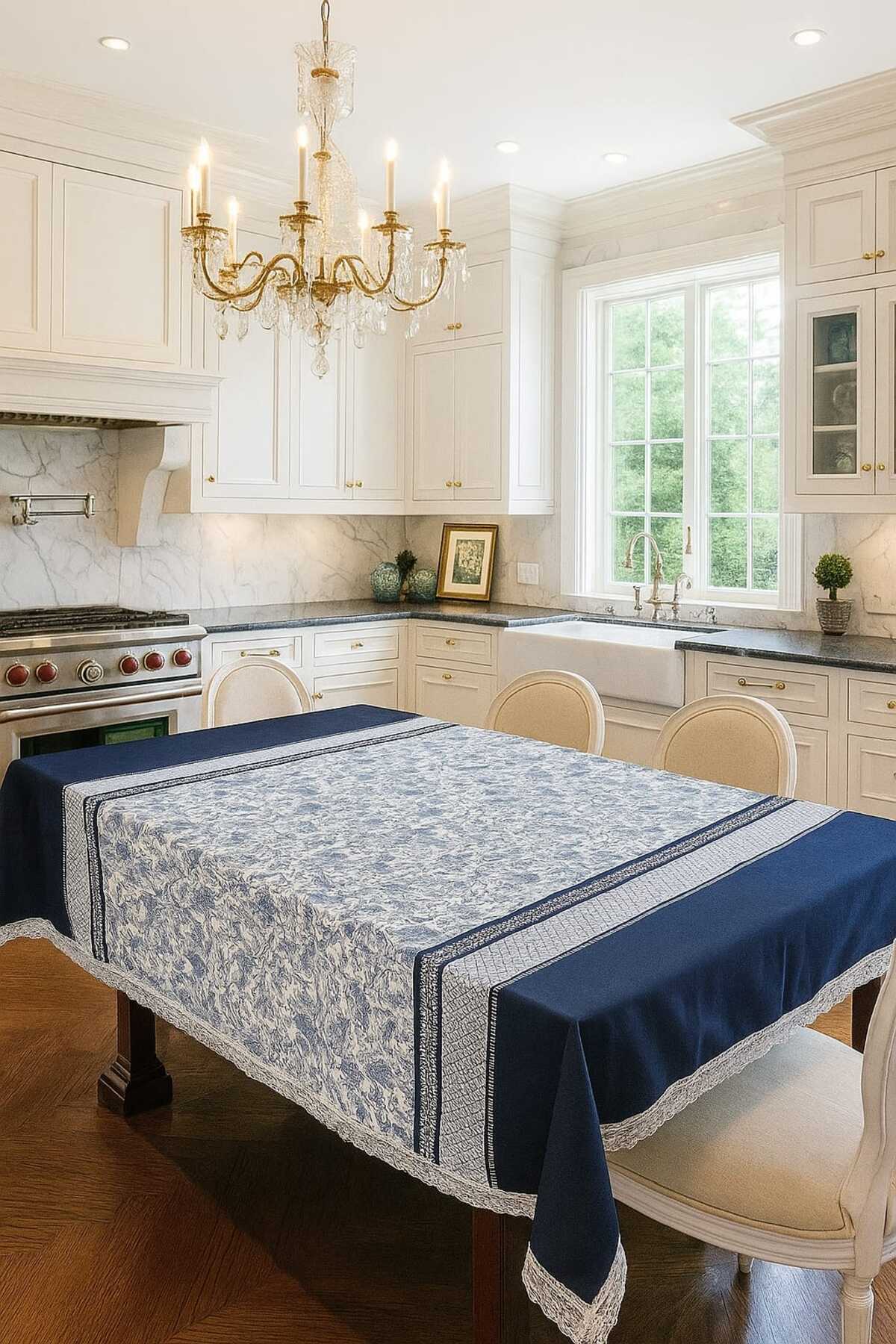 Lüks Mavi Beyaz Çiçek Desenli Masa Örtüsü Dantel Detaylı Şık Ev Dekoratif Sofra Örtüsü Lüks Mavi Beyaz Çiçek Desenli Masa Örtüsü Dantel Detaylı Şık Ev Dekoratif Sofra Örtüsü KJDHY-0 150 x 180