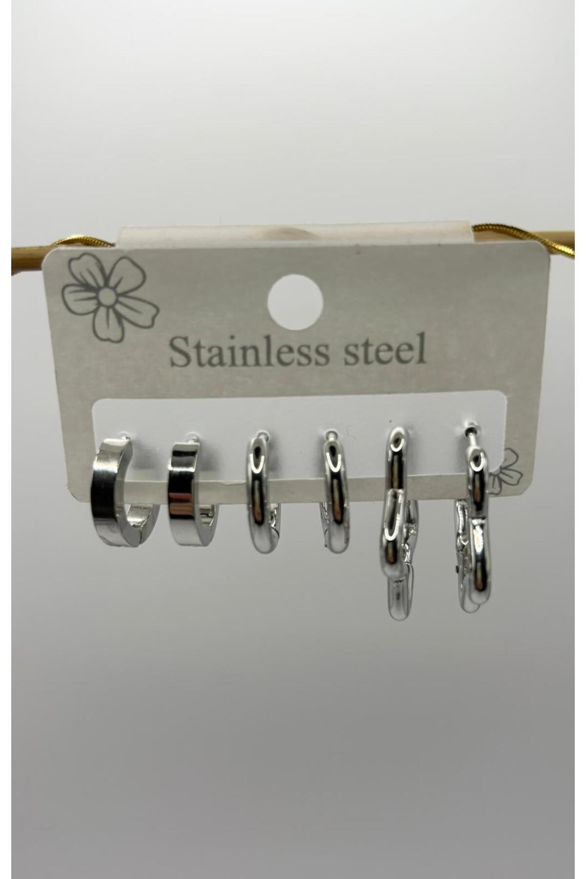 Çelik Gümüş Renk Yıldızlı Küpe Çelik Gümüş Renk Yıldızlı Küpe 0345670002 تک سایز