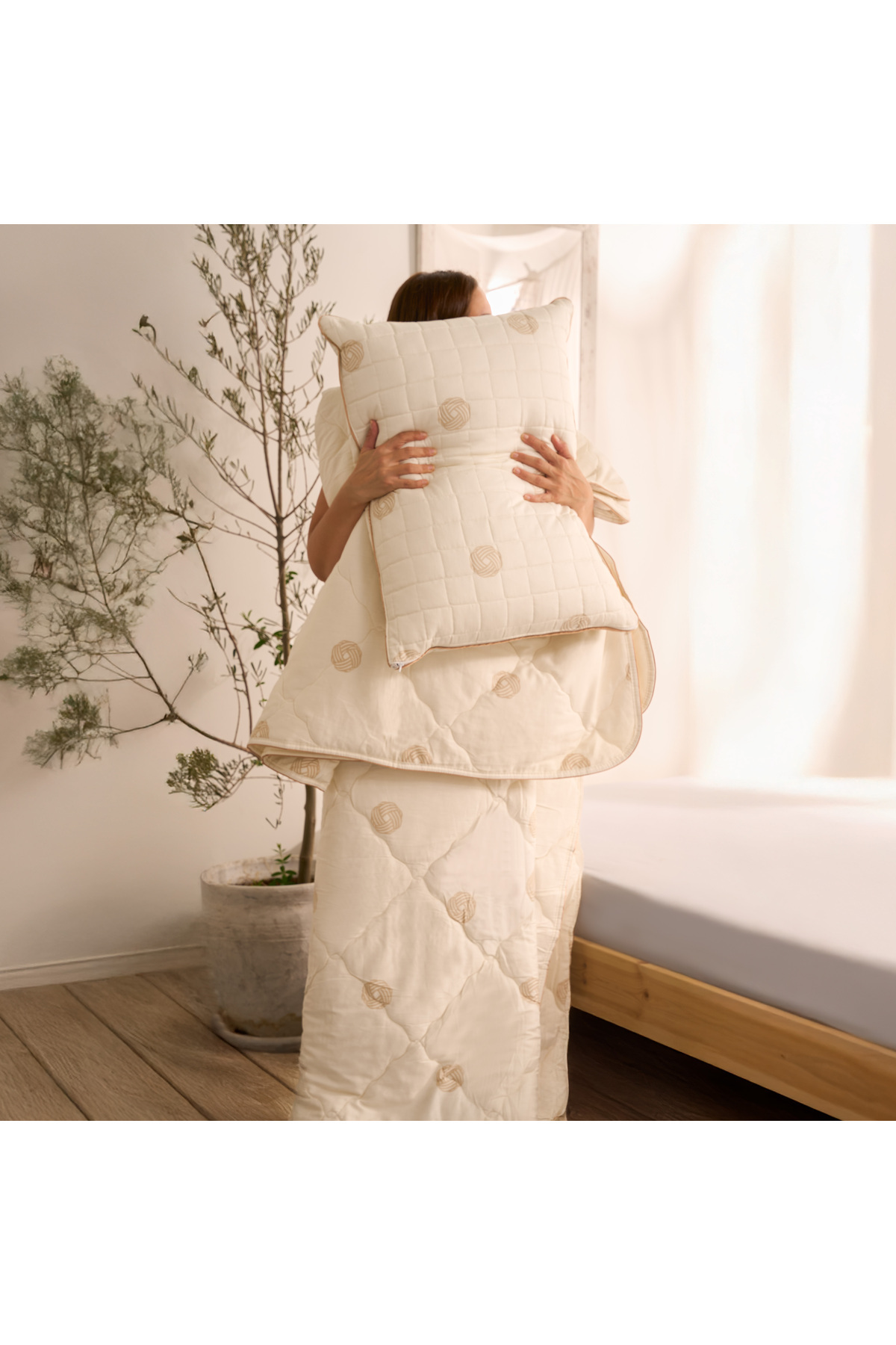 - Materyal Bileşeni : Yün termal dengeleme özellikleri ile bilinir ve bu özelliği sayesinde yorganların içerisinde ideal bir sıcaklık ortamı oluşturur. Yün liflerinin karmaşık yapısı, vücut sıcaklığını düzenleyerek mevsim şartlarına uyum sağlar.