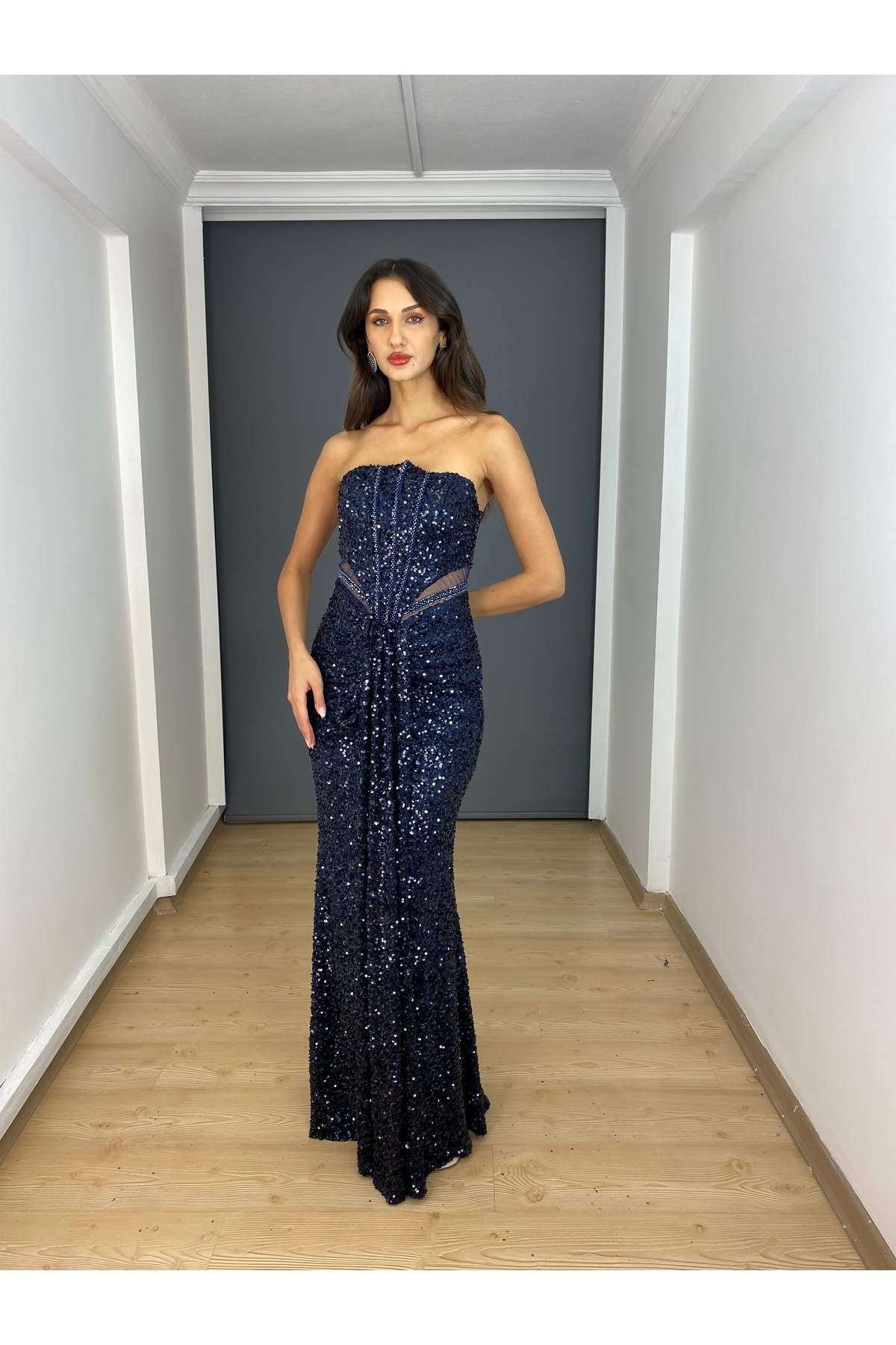 Lacivert Straplez Bel Transparan Boncuk Detaylı Payet Uzun Abiye Elbise Lacivert Straplez Bel Transparan Boncuk Detaylı Payet Uzun Abiye Elbise gar8521 42