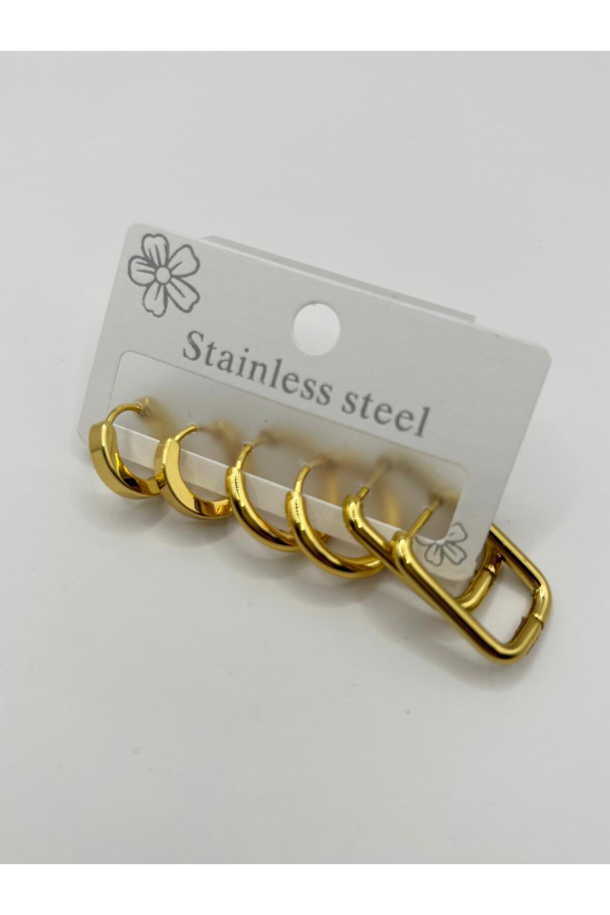 Çelik Gold Dikdörtgenli Halkalı Küpe Çelik Gold Dikdörtgenli Halkalı Küpe 0345670011 تک سایز