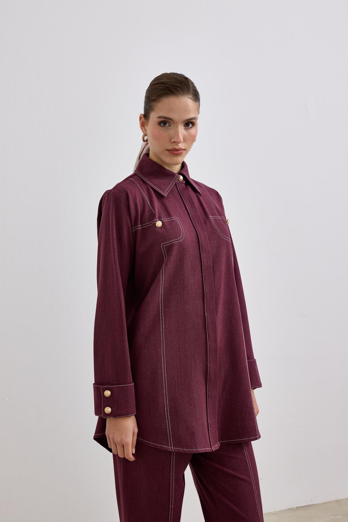 Adrian Düğmeli ve Püskül Kemerli Pantolonlu Takım MÜRDÜM Adrian Düğmeli ve Püskül Kemerli Pantolonlu Takım MÜRDÜM HLY0126K101.027 3