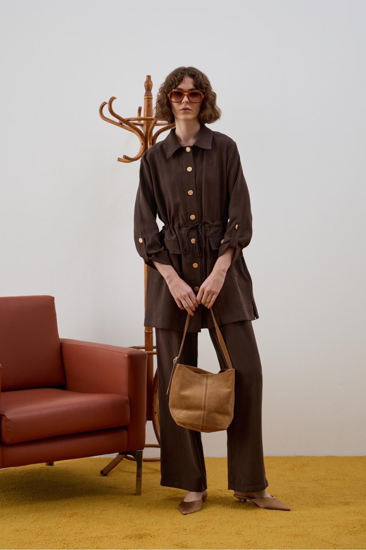Adrian Düğmeli ve Püskül Kemerli Pantolonlu Takım KAHVERENGİ Adrian Düğmeli ve Püskül Kemerli Pantolonlu Takım KAHVERENGİ HLY0126K101.027 3