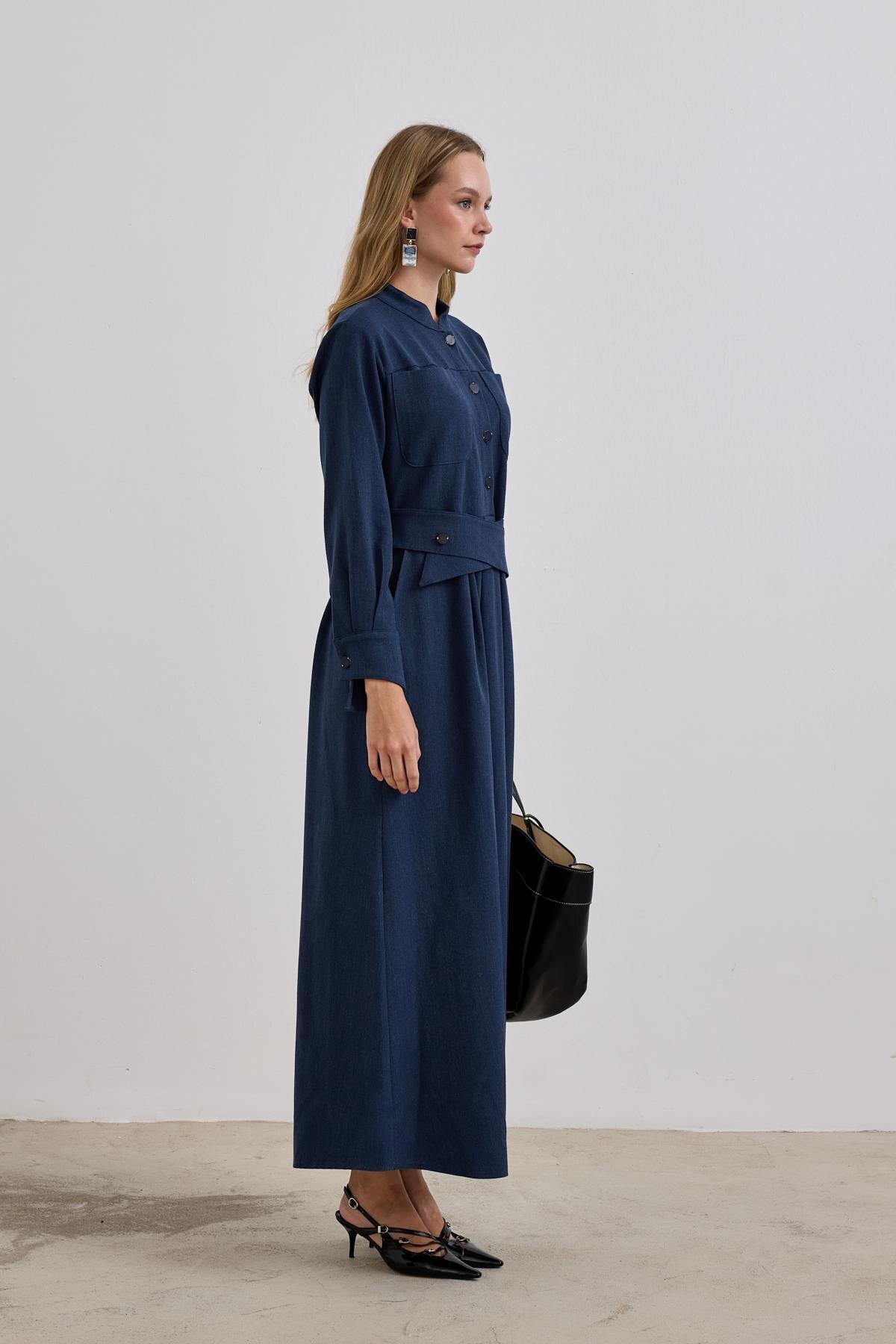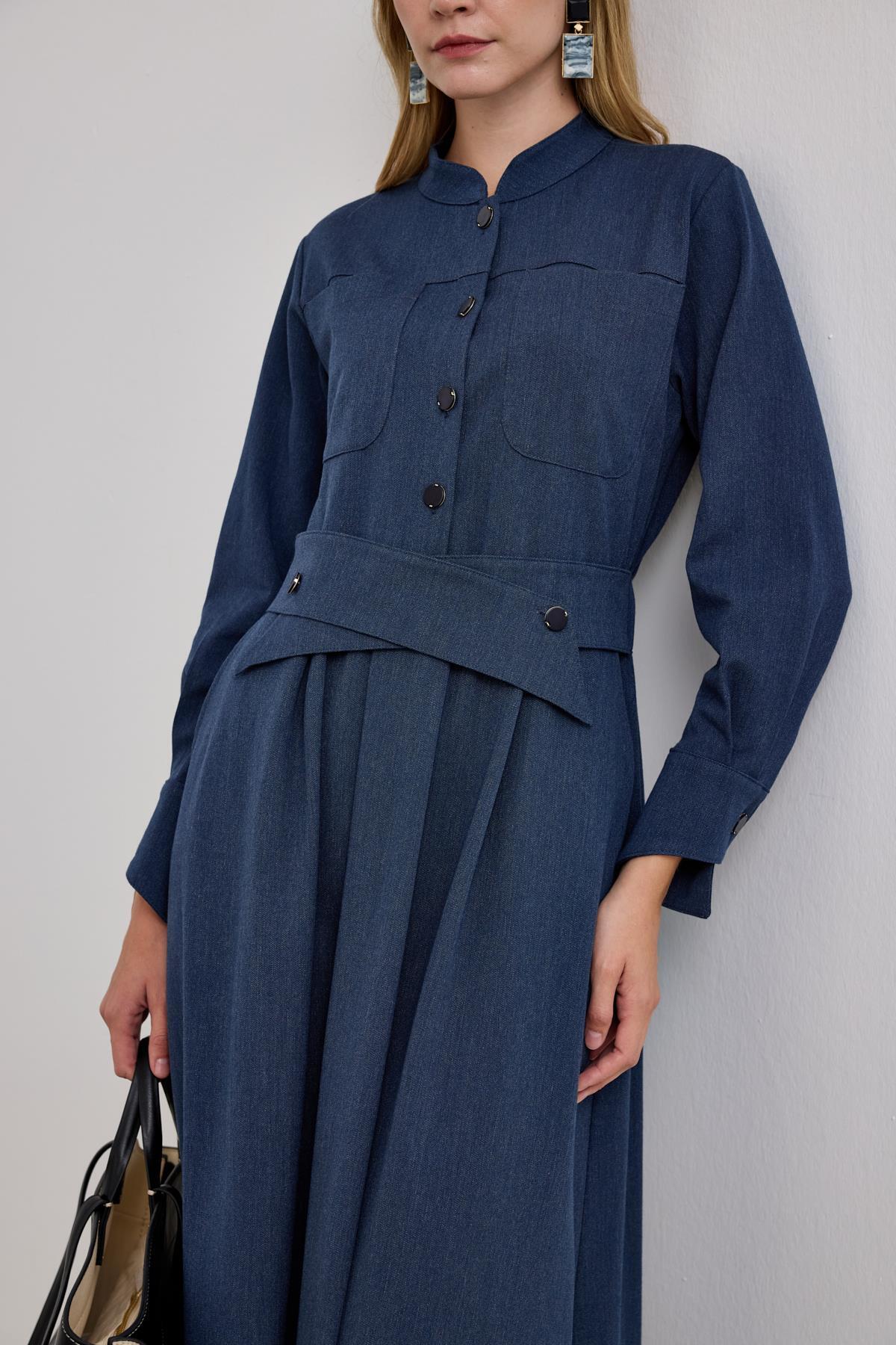Dore Kendinden Kemerli Elbise LACİVERT Dore Kendinden Kemerli Elbise LACİVERT HLY0126K113.003 3
