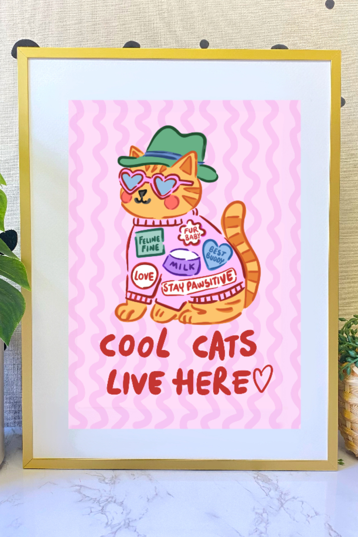 Baskı Koleksiyonundan "COOL CATS" Baskısı - Beyaz Çerçeveli Baskı Koleksiyonundan "COOL CATS" Baskısı - Beyaz Çerçeveli HMBASKICOOLCATS 21 x 30
