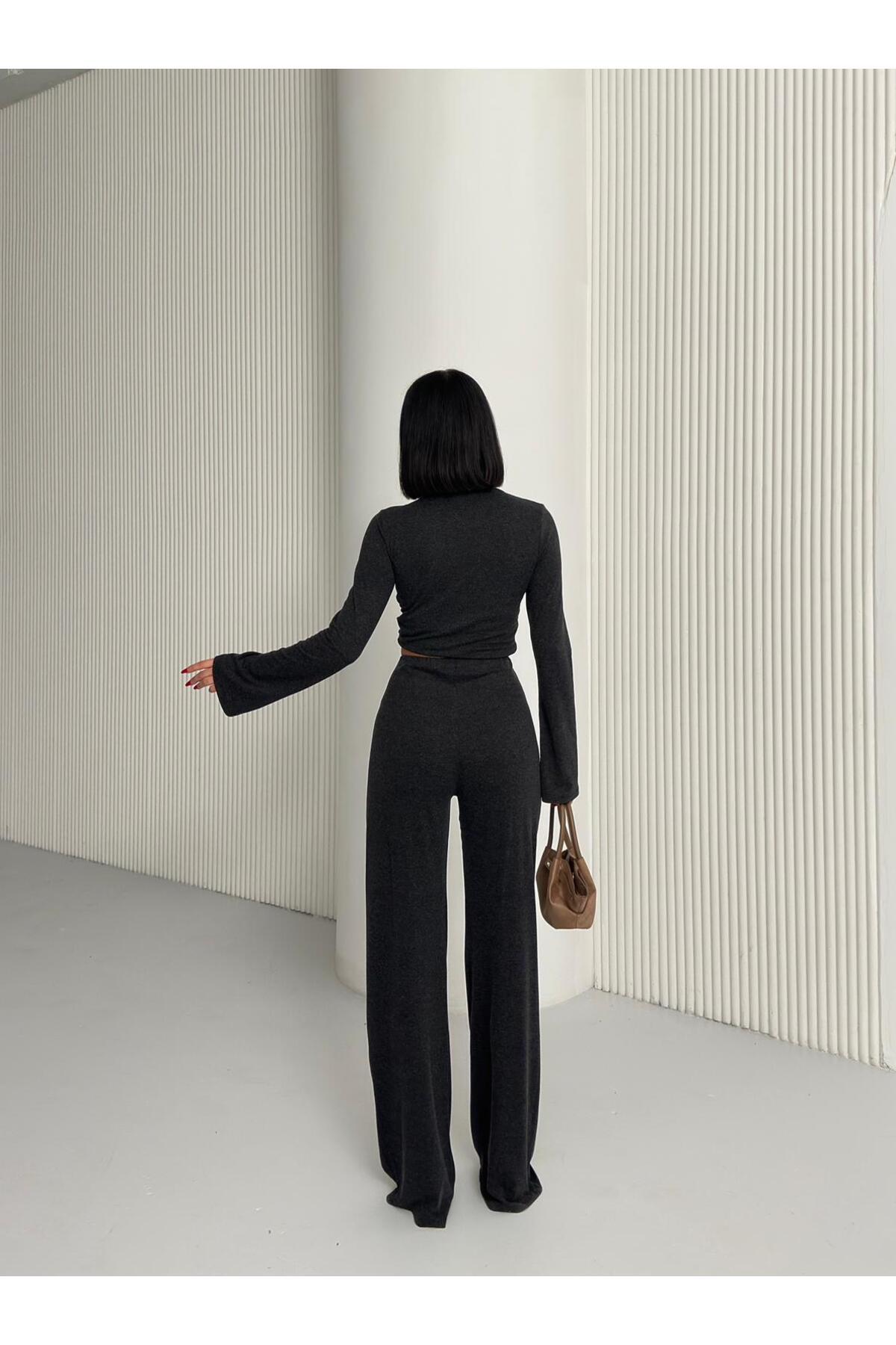 V Yaka Gold Aksesuarlı Göbek Dekolteli Uzun Kol Üst Yüksek Bel Büzgülü Pantolon Yün Viskon Takım V Yaka Gold Aksesuarlı Göbek Dekolteli Uzun Kol Üst Yüksek Bel Büzgülü Pantolon Yün Viskon Takım aytenli001085 L