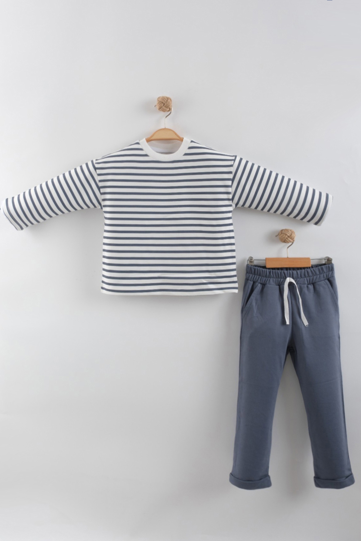 Erkek Çocuk Çizgili Oversize Eşofman Takımı Erkek Çocuk Çizgili Oversize Eşofman Takımı 1004 8-9 Yaş