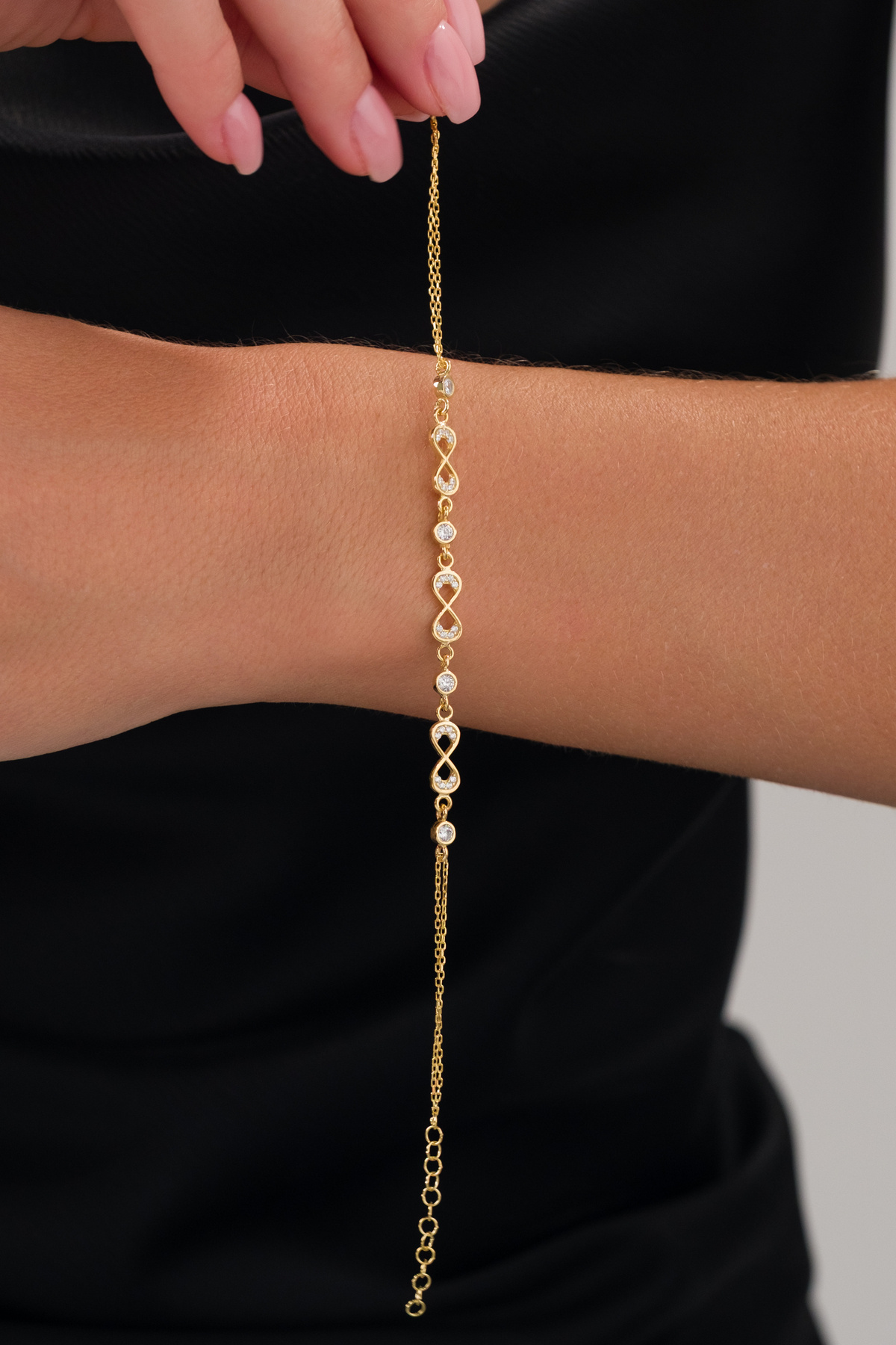 Sonsuzluk Temalı Zirkon Taşlı Şık 925 Ayar Gümüş Bileklik Sonsuzluk Temalı Zirkon Taşlı Şık 925 Ayar Gümüş Bileklik Fionte-020-5808 15 Cm