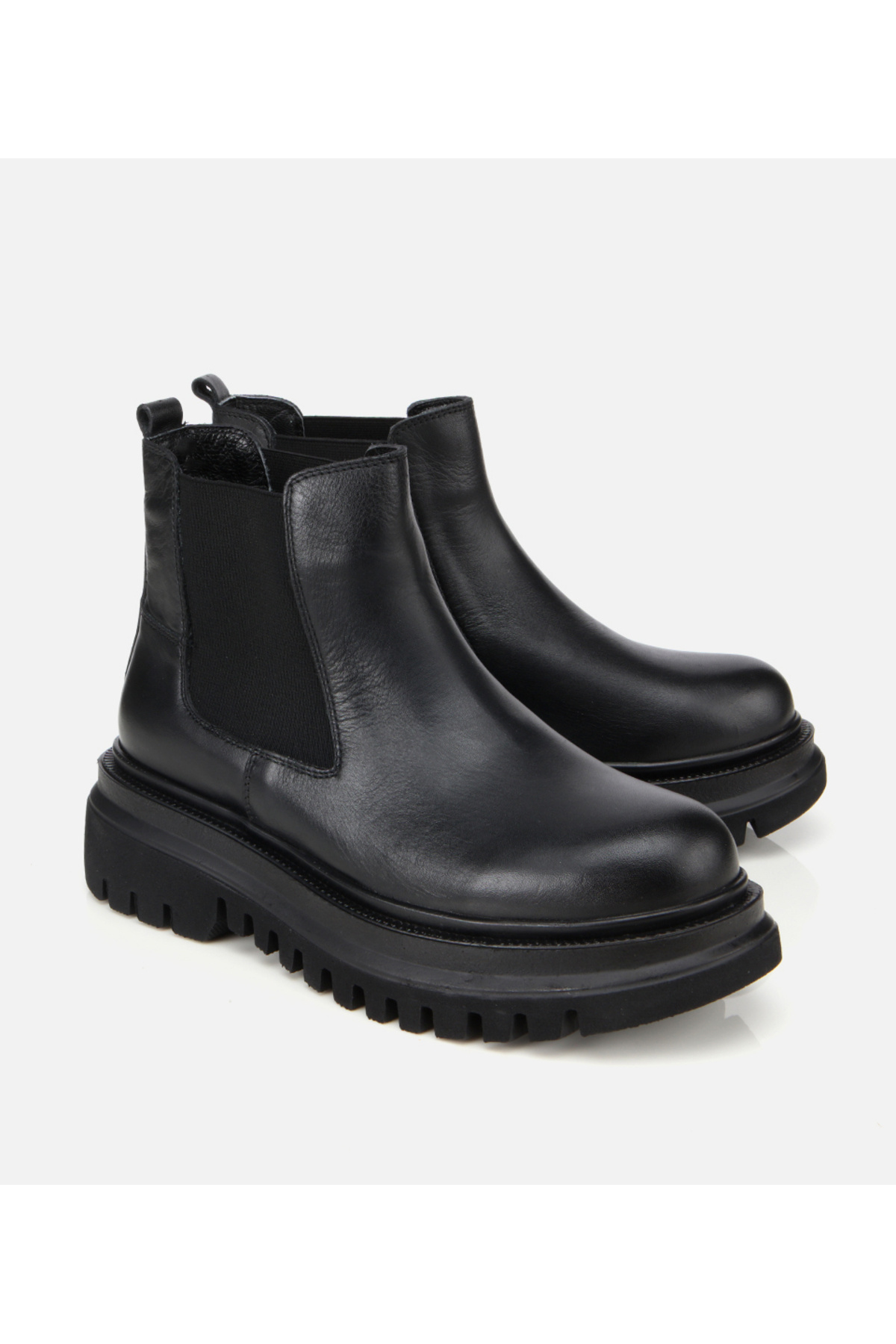 Kadın Deri Siyah Lastik Detaylı Kalın Tabanlı Düz Bot Kadın Deri Siyah Lastik Detaylı Kalın Tabanlı Düz Bot 01BOH314540A 41