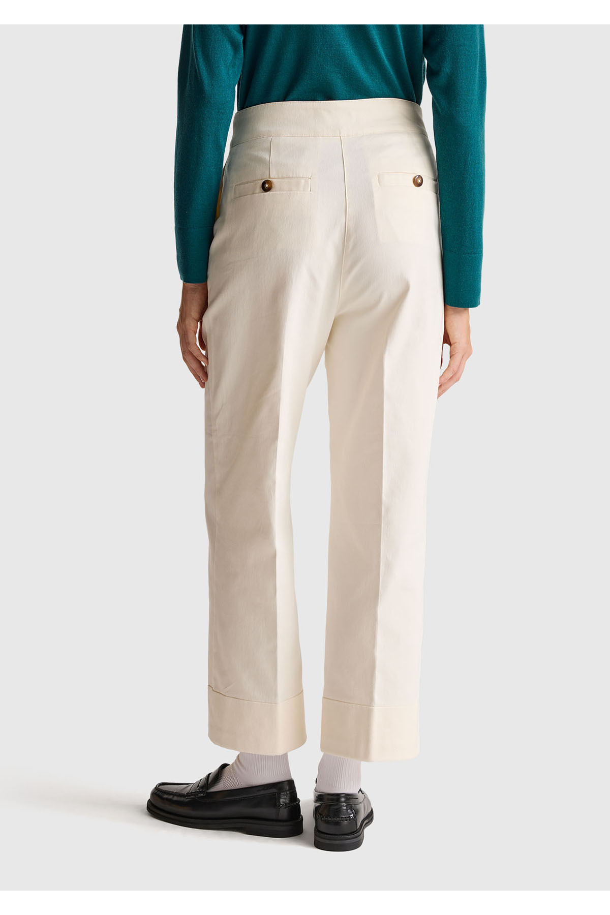 Kadın Krem Pamuk Karışımlı Düğmeli Paçası Katlamalı Pantolon Kadın Krem Pamuk Karışımlı Düğmeli Paçası Katlamalı Pantolon 125A4SJCDF07J 44