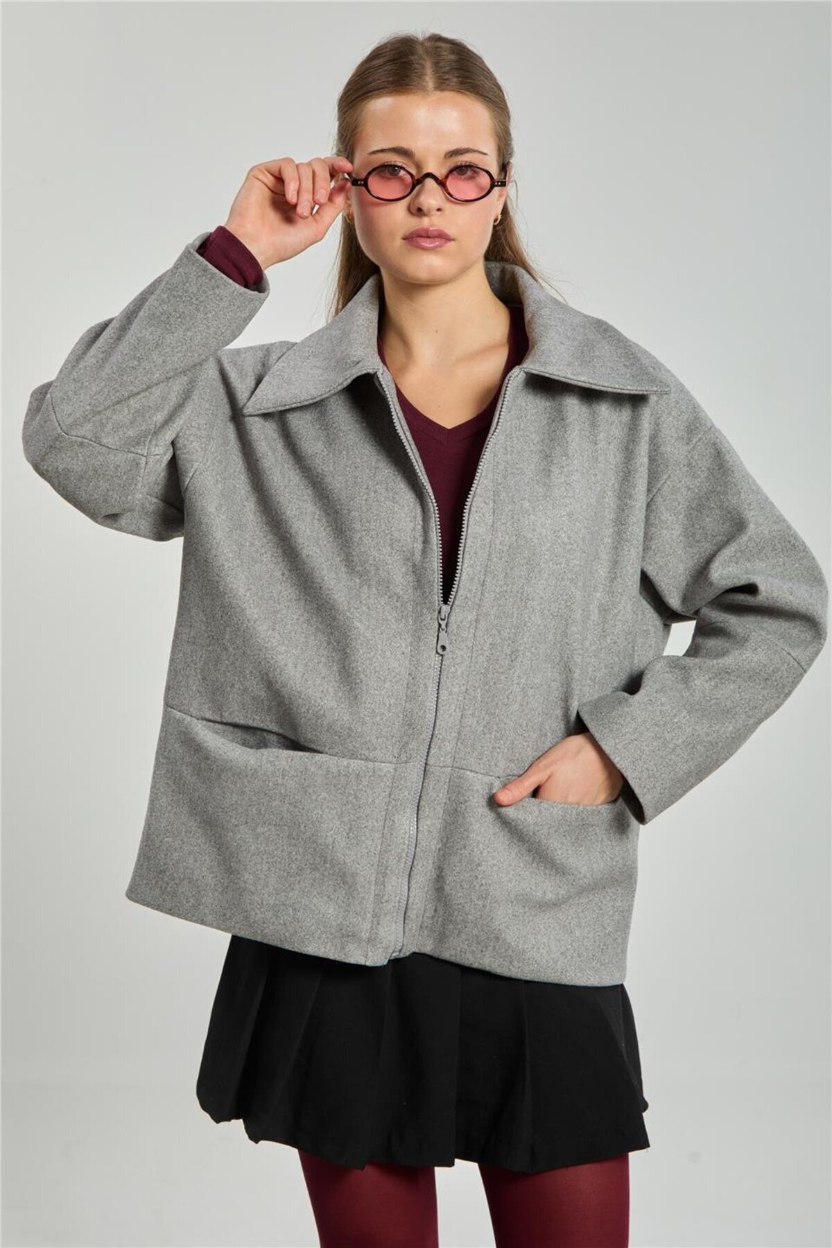 Kadın Çift Cep Oversize Kısa Kaşe Ceket - Füme Kadın Çift Cep Oversize Kısa Kaşe Ceket - Füme 1015-25WN50001 L