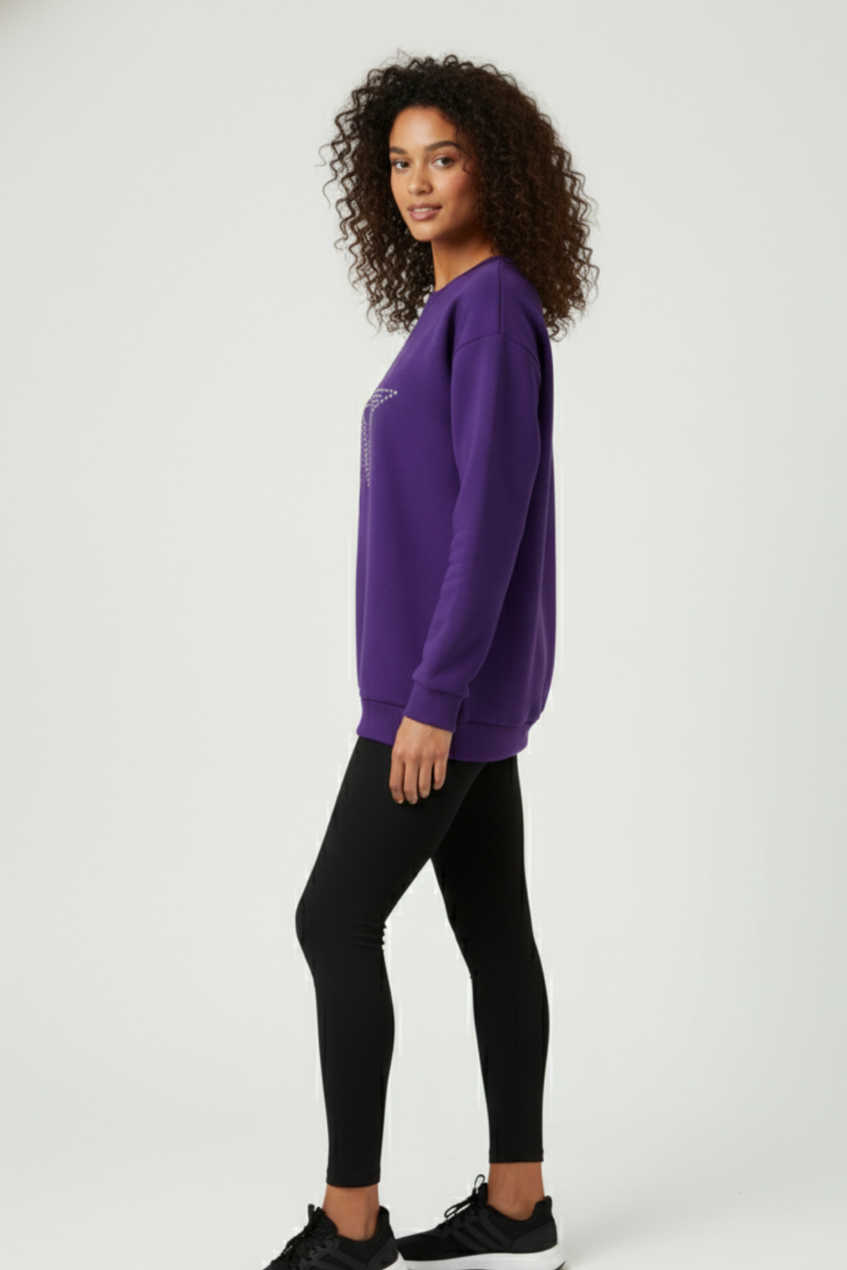 Kadın Büyük Yıldız Baskılı Oversize Sweatshirt Rahat Hoodie Kadın Büyük Yıldız Baskılı Oversize Sweatshirt Rahat Hoodie mlk-bordo1 XL