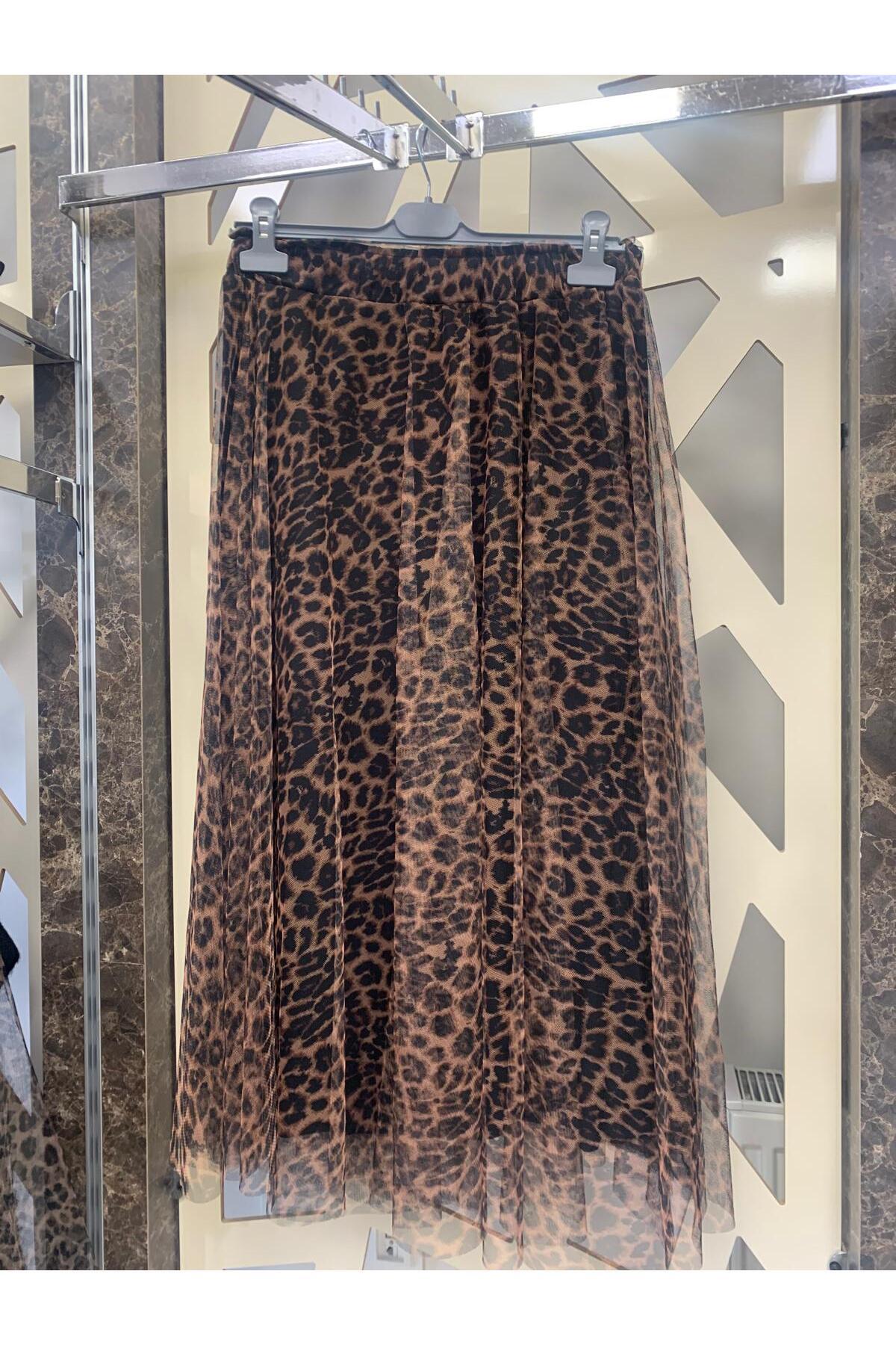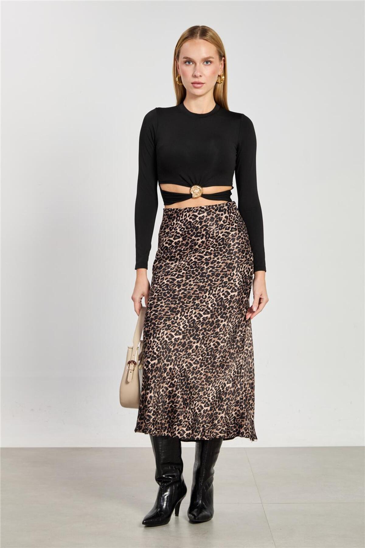 Kadın Leopar Desen Midi Etek -Kahve Kadın Leopar Desen Midi Etek -Kahve 381-25M06003 XL