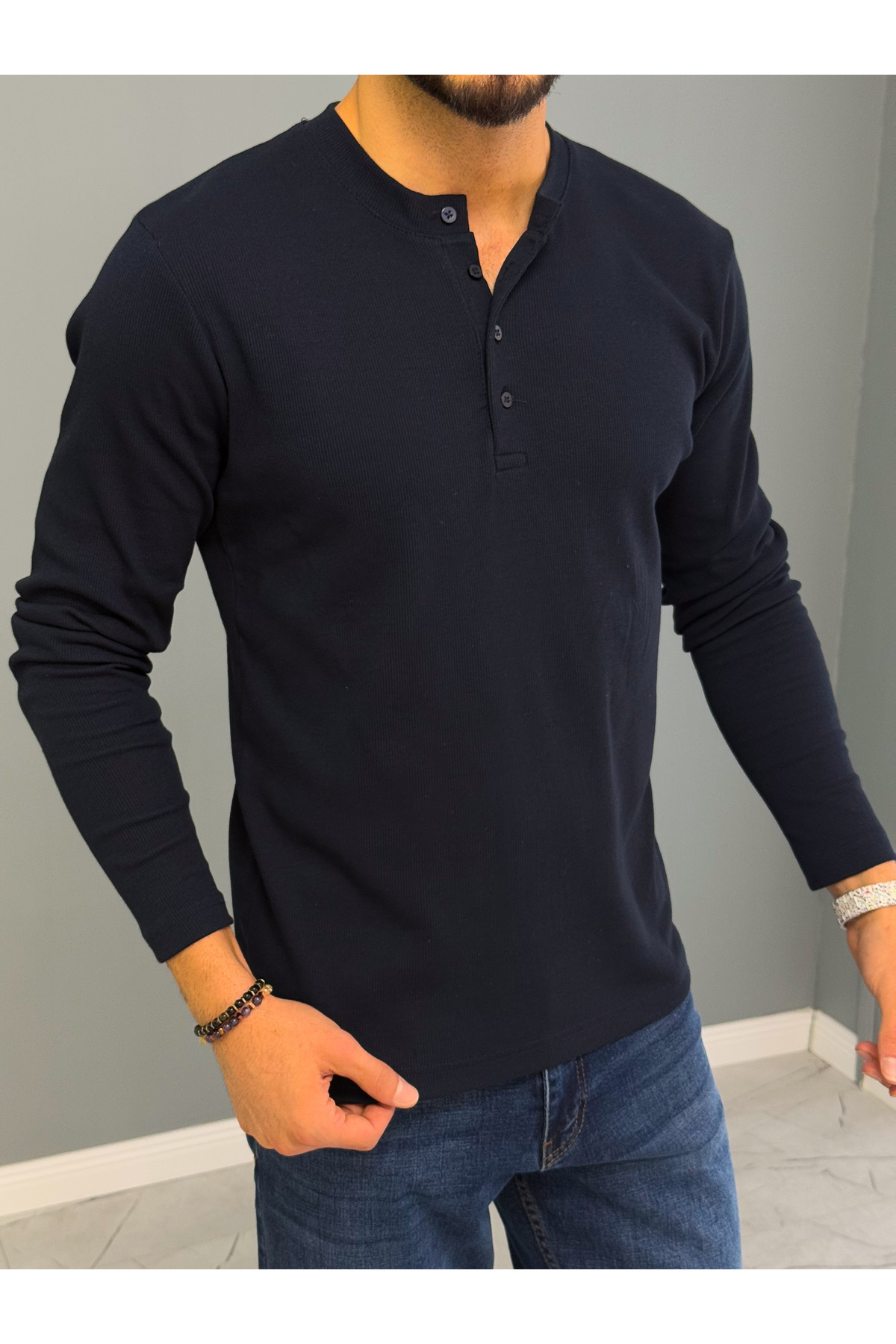 Lacivert Essential Henley Düğmeli Uzun Kol T-Shirt Lacivert Essential Henley Düğmeli Uzun Kol T-Shirt S129 XL