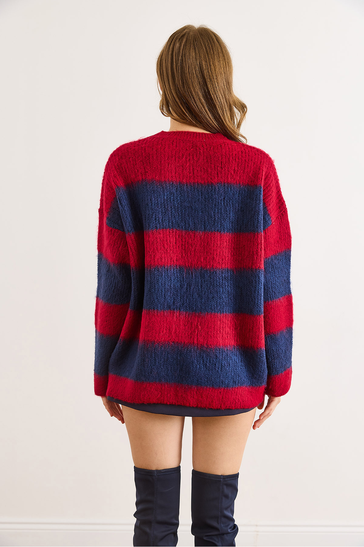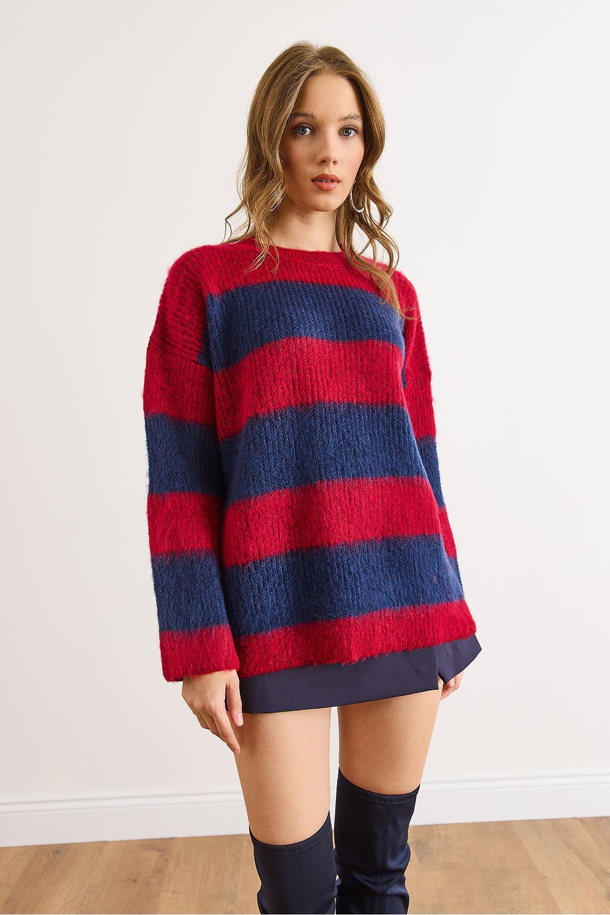 Kadın Bordo Lacivert Çizgili Yumuşak Dokulu Kalın Triko Kazak KZK-19001039 Kadın Bordo Lacivert Çizgili Yumuşak Dokulu Kalın Triko Kazak KZK-19001039 تک سایز