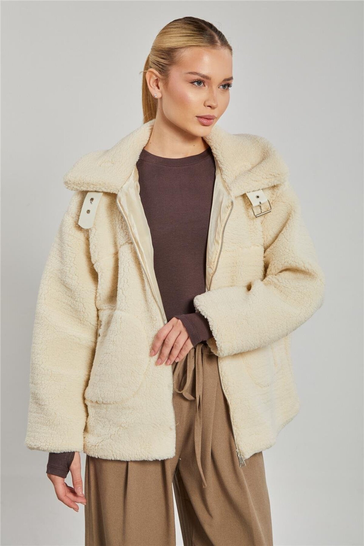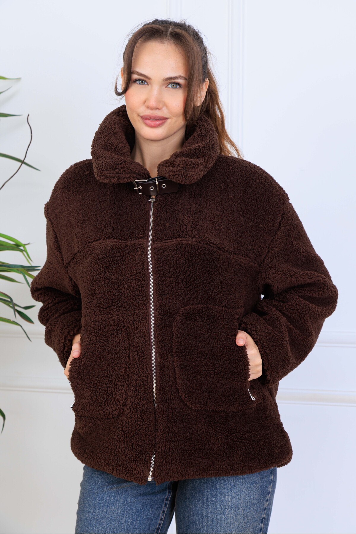 Kadın Yaka Kemerli Cepli Welsoft Mont - Kahve Kadın Yaka Kemerli Cepli Welsoft Mont - Kahve 1015-25K98014 L