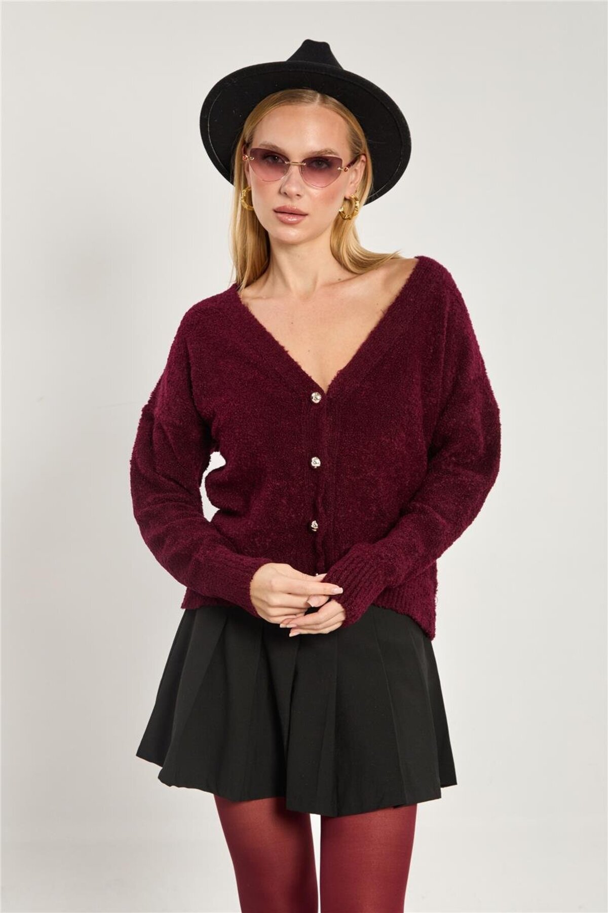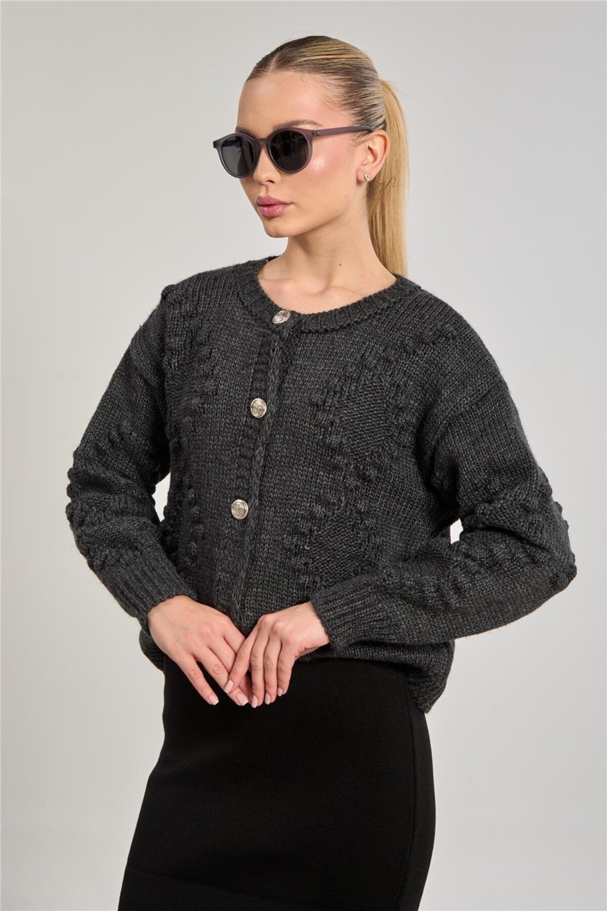 Kadın Düğmeli Fitilli Uzun Triko Hırka - Kahve Kadın Düğmeli Fitilli Uzun Triko Hırka - Kahve 1099-25K08005 Standart