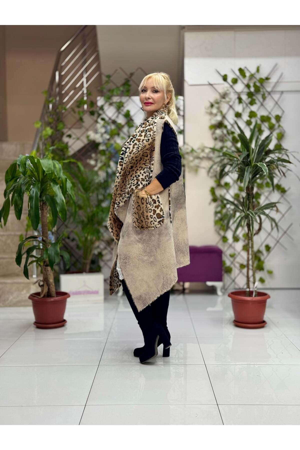 YG3340 Leopar Desenli Kürklü İtalyan Nubuk Yelek Taş YG3340 Leopar Desenli Kürklü İtalyan Nubuk Yelek Taş YG3340TAŞ Standart