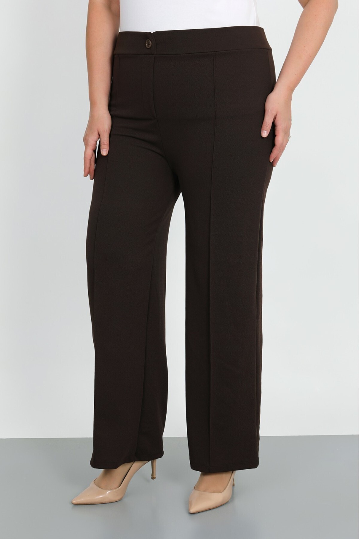Kadın Kahve Esnek Bel Düğmeli Bol Paça Likralı Pantolon Kadın Kahve Esnek Bel Düğmeli Bol Paça Likralı Pantolon BY1035-01-KAHVE 54