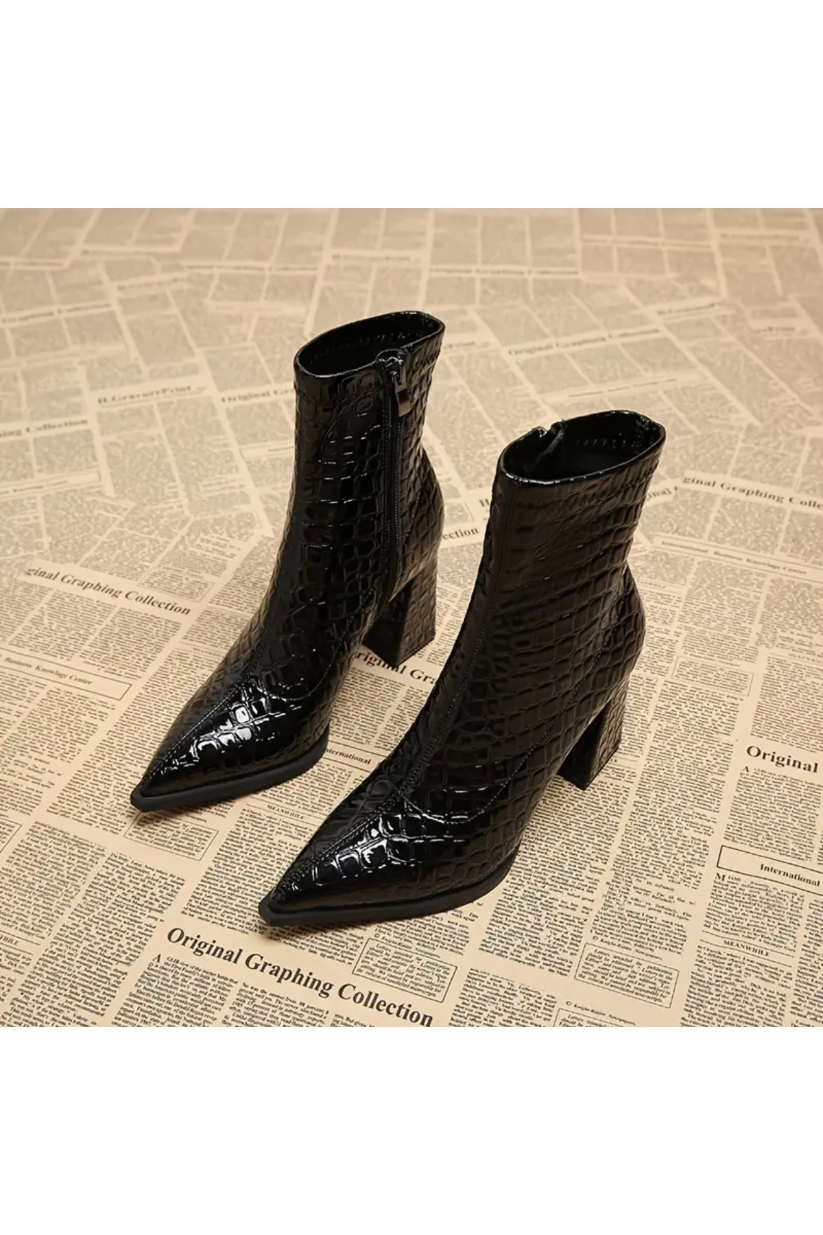 Zivara Kadın Kroko Bot Sivri Burun Modern ve Şık Tasarım Zivara Kadın Kroko Bot Sivri Burun Modern ve Şık Tasarım 15 40