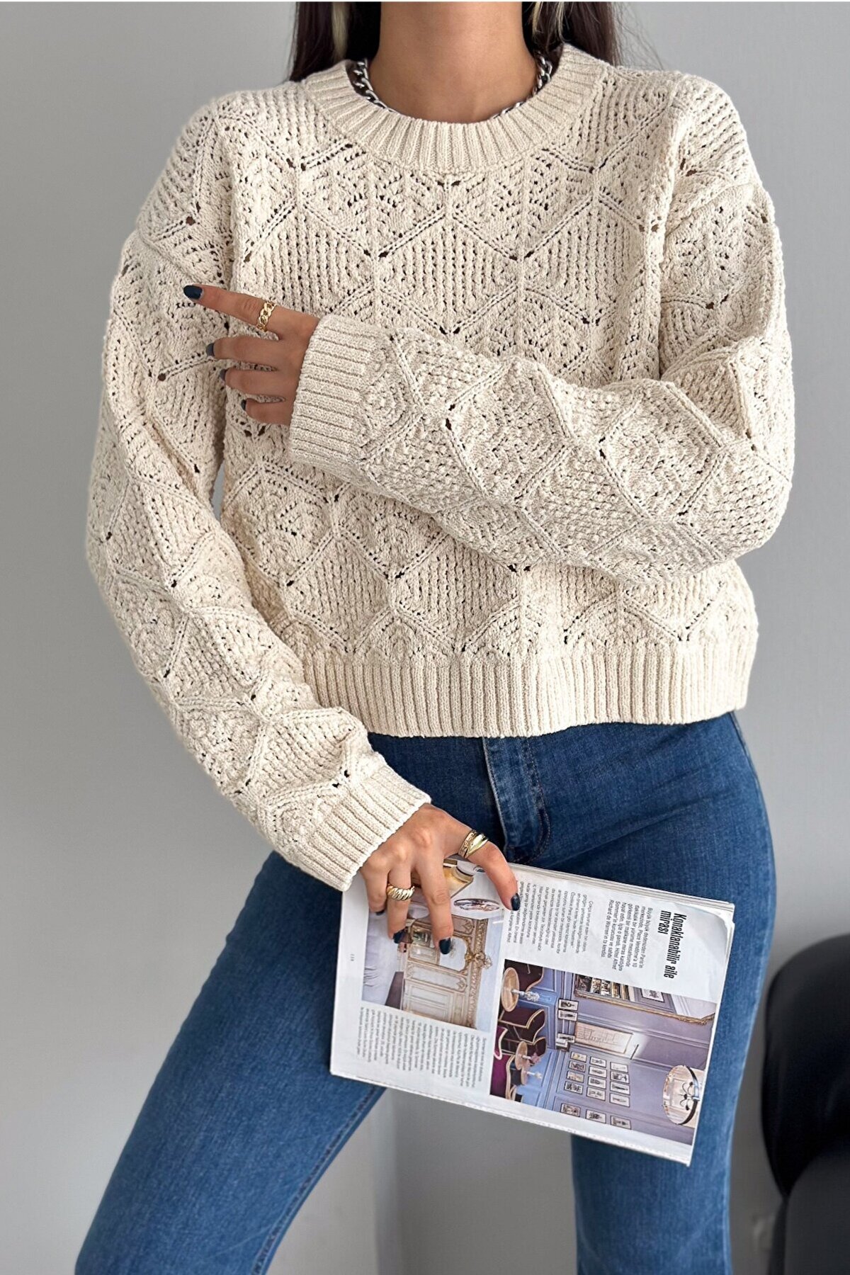 Kadın Bisiklet Yaka Delikli Triko Kazak Kadın Bisiklet Yaka Delikli Triko Kazak 8204 Standart