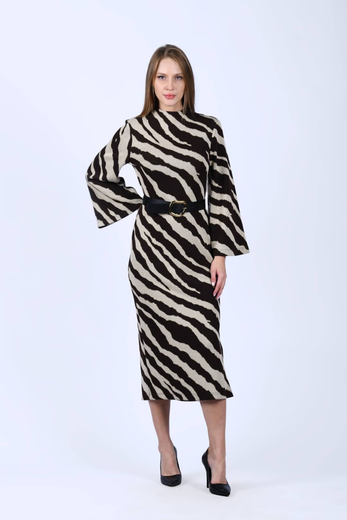 Vizon Siyah Kadife Kumaş Leopar Elbise - LE574 Vizon Siyah Kadife Kumaş Leopar Elbise - LE574 LL.K26.ELB.LE574.0001 42