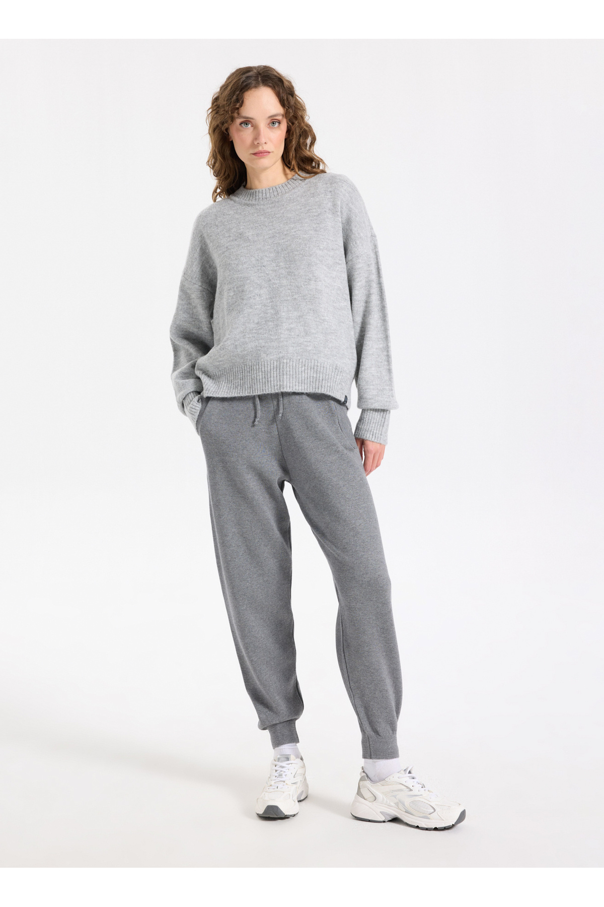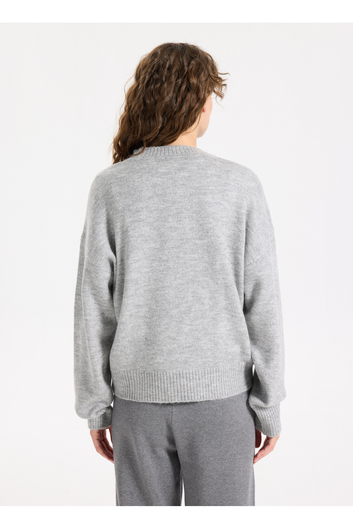 Bisiklet Yaka Loose Fit Düz Örgü Desenli Gri Melanj Kazak Kadın J5WL-KZK7153 Bisiklet Yaka Loose Fit Düz Örgü Desenli Gri Melanj Kazak Kadın J5WL-KZK7153 5003276415 XL