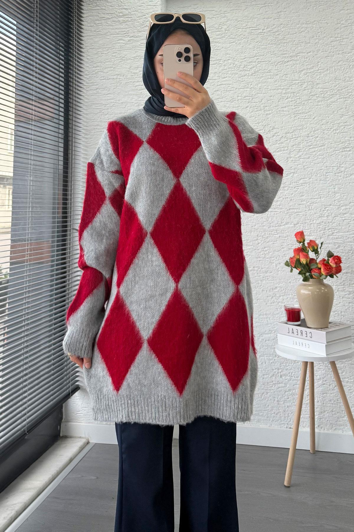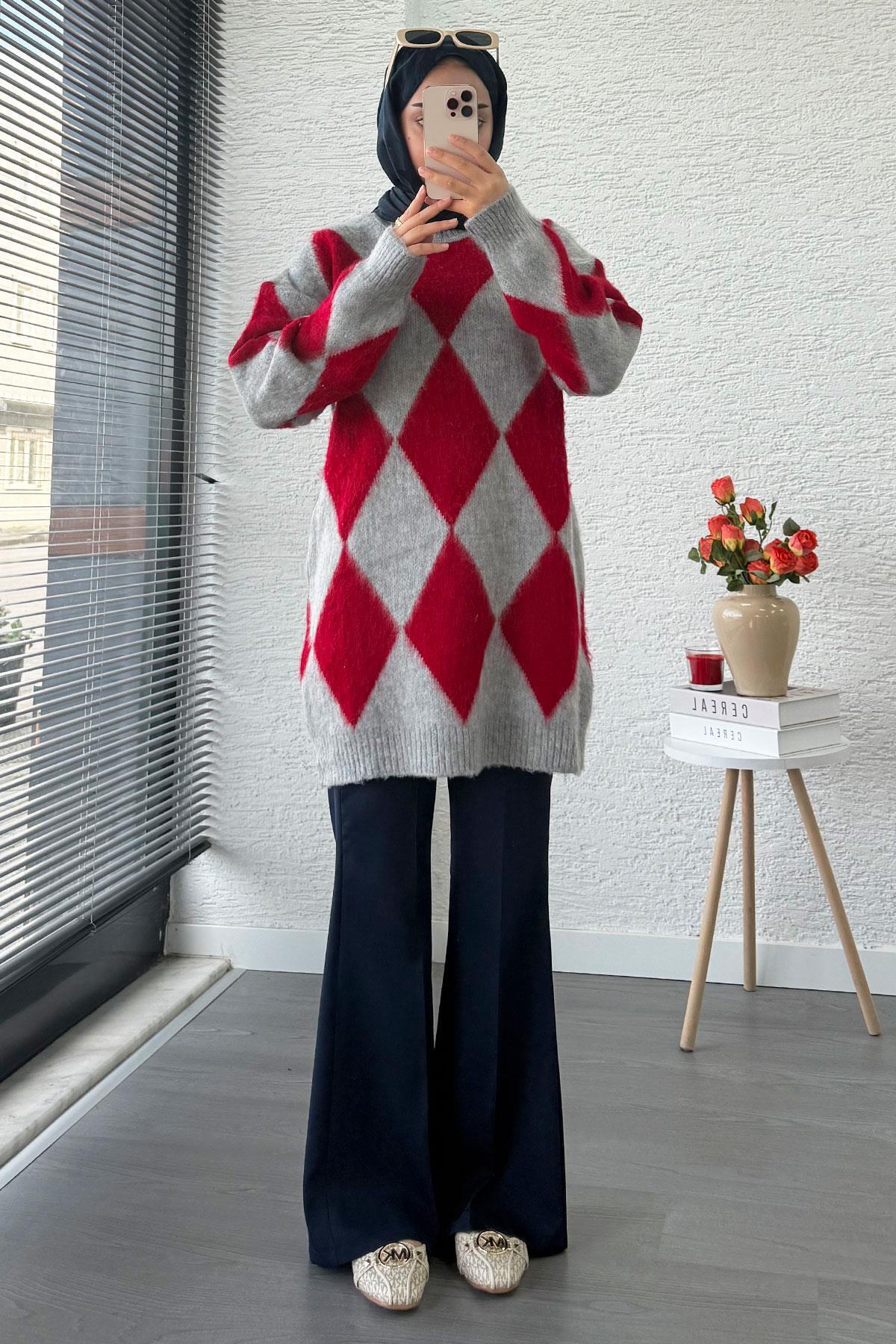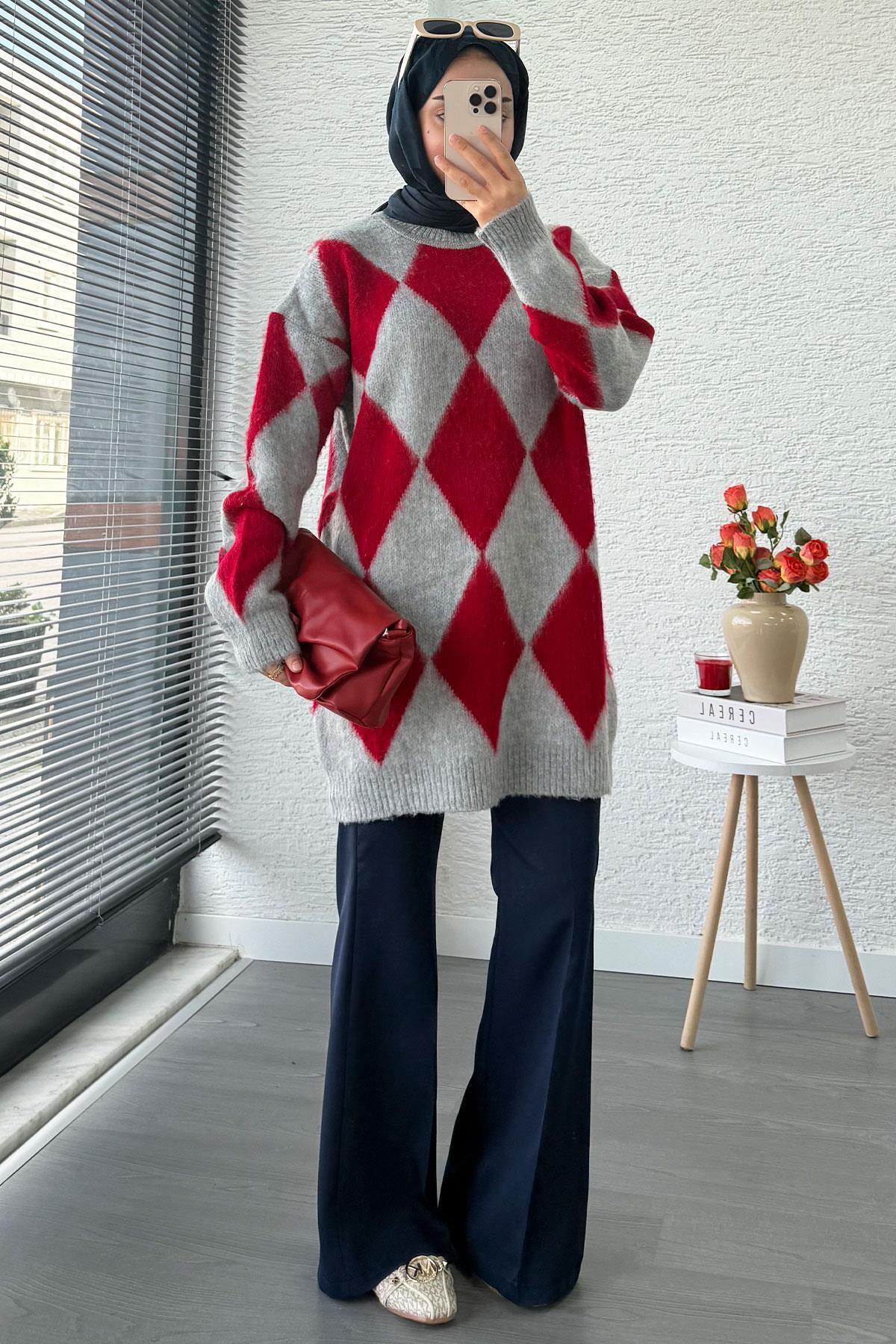 Baklava Desen Yumoş Triko Kadın Kazak – Kırmızı Baklava Desen Yumoş Triko Kadın Kazak – Kırmızı mlk15621 Standart