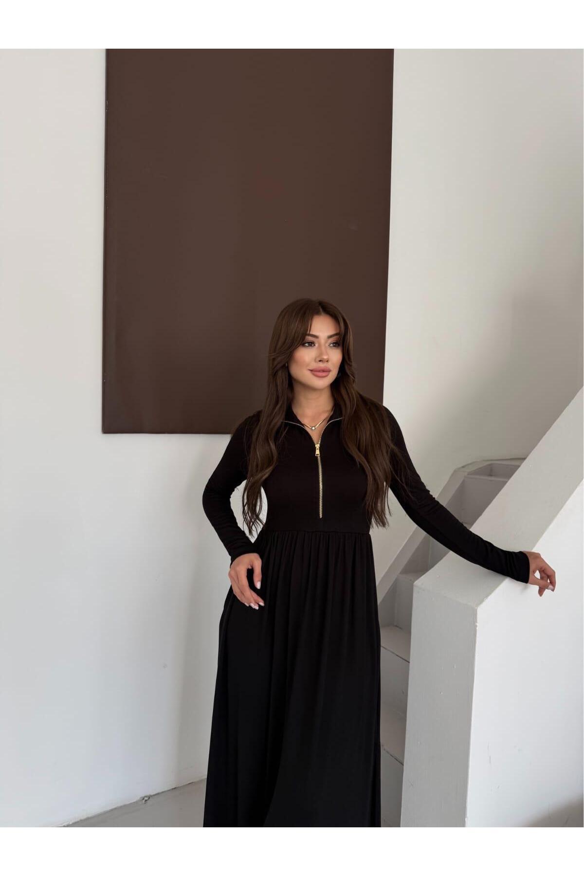 BUKETLİ Kadın Fermuarlı Dik Yaka Yandan İKİ Yırtmaçlı Beli Büzgülü Uzun Kollu UZUN ELBİSE BUKETLİ Kadın Fermuarlı Dik Yaka Yandan İKİ Yırtmaçlı Beli Büzgülü Uzun Kollu UZUN ELBİSE 112074 XL