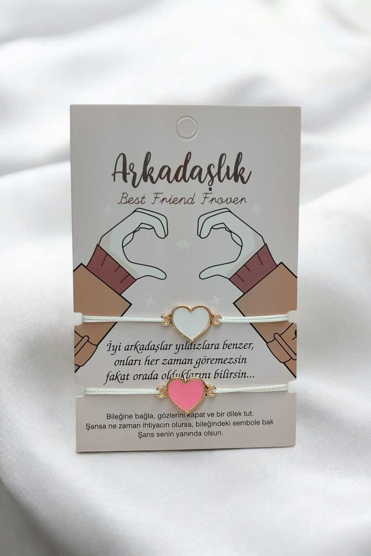 2'li Arkadaş Bilekliği Beyaz Ve Pembe Kalpli Şans Bilekliği , İp Bileklik 2'li Arkadaş Bilekliği Beyaz Ve Pembe Kalpli Şans Bilekliği , İp Bileklik c8646 تک سایز