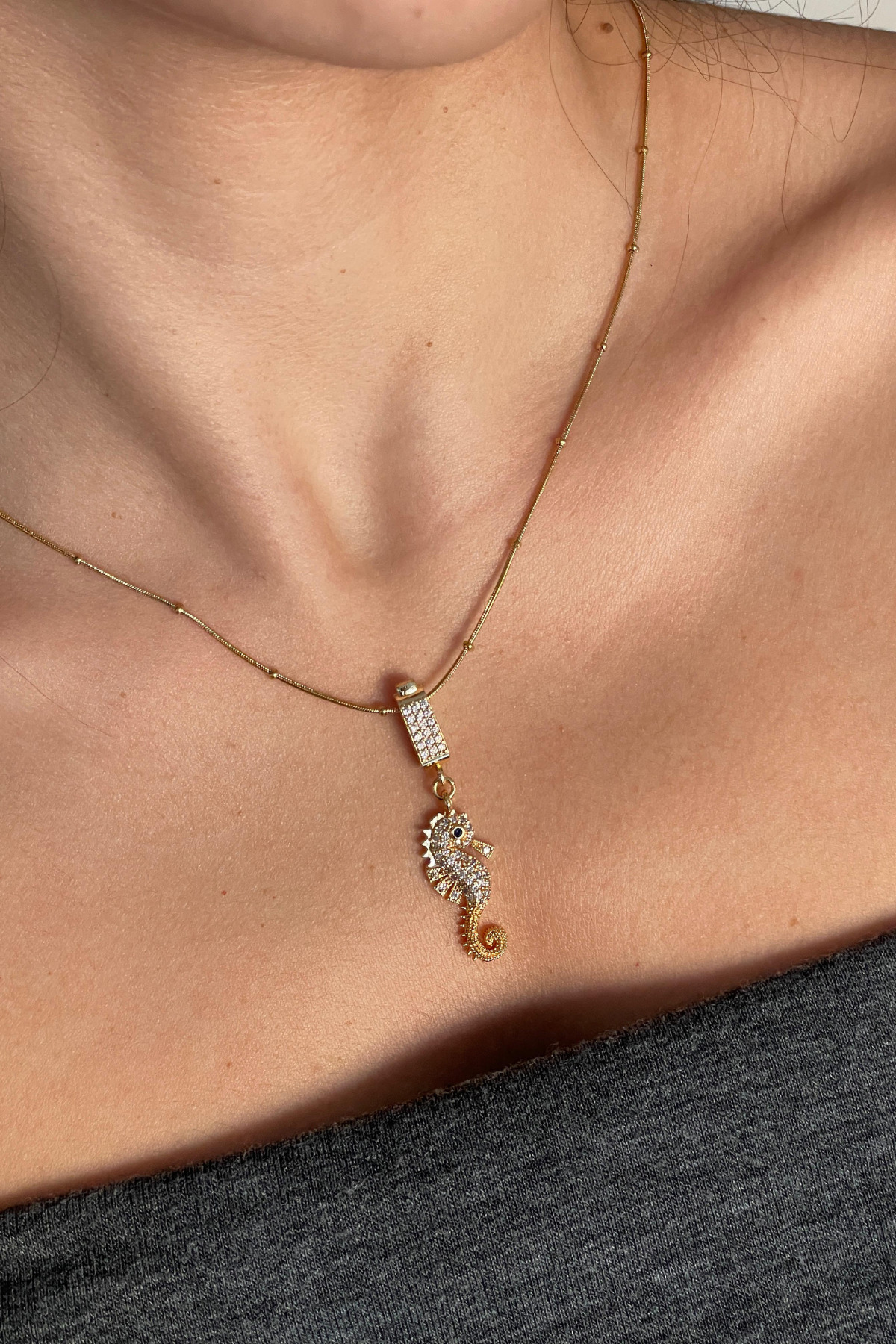 Zirkon Taşlı Deniz Atı Paslanmaz Çelik Kolye – Gold Renk Kararmaz Zirkon Taşlı Deniz Atı Paslanmaz Çelik Kolye – Gold Renk Kararmaz RDC00144 45 cm
