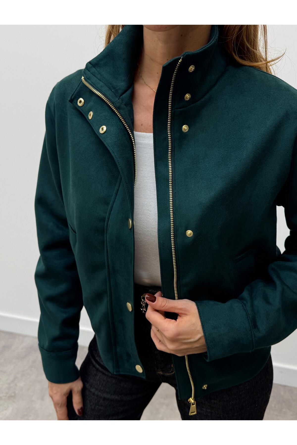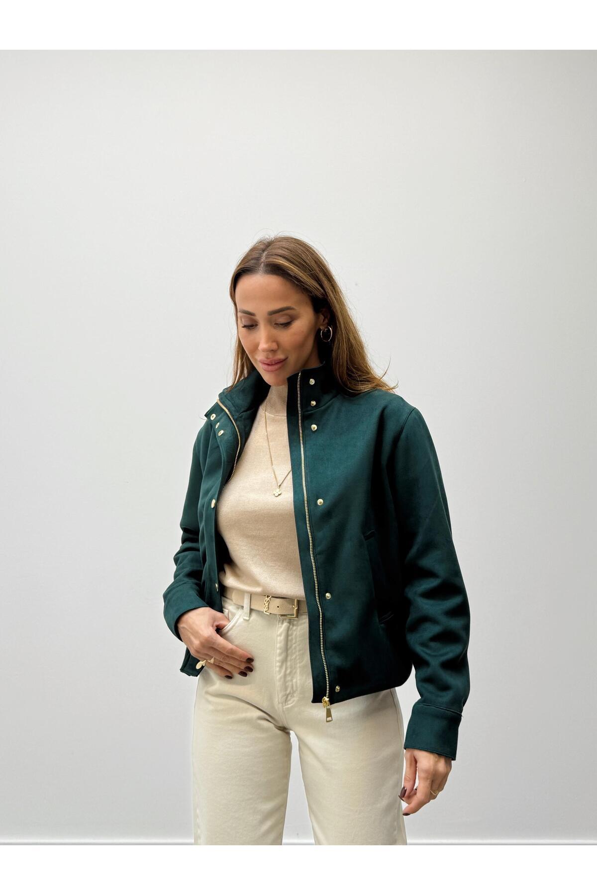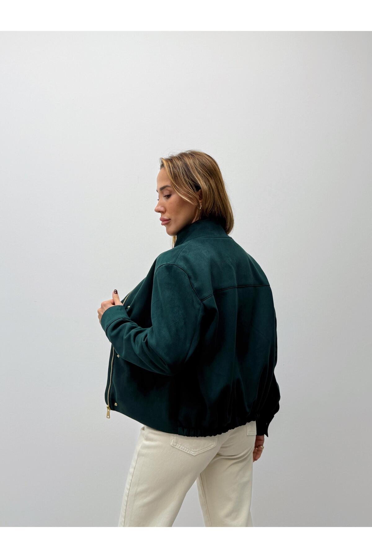 Kadın Süet Kumaş Arden Bomber Yeşil Ceket Kadın Süet Kumaş Arden Bomber Yeşil Ceket 262096 L
