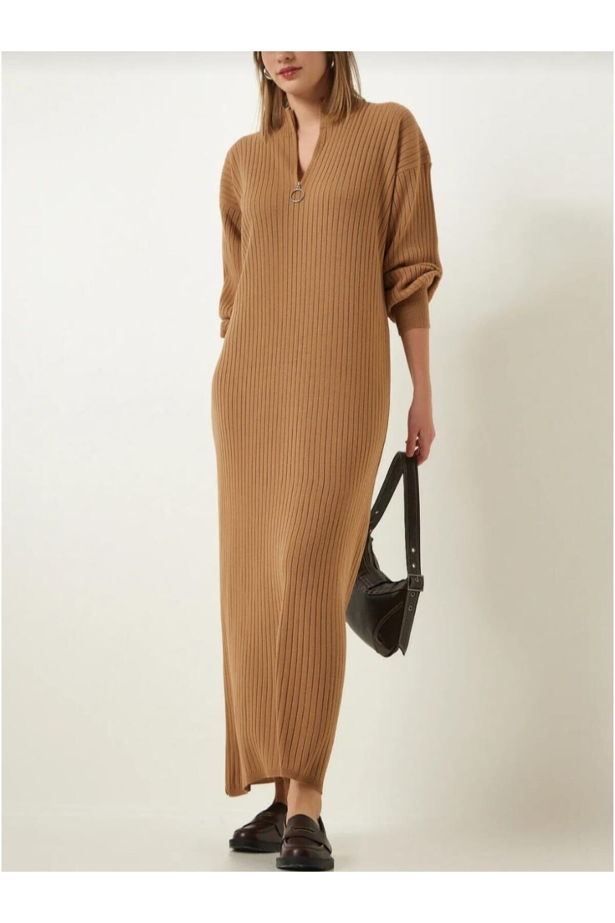 KADIN FERMUAR DETAYLI KAŞKORSE JAKARLI TRİKO ELBİSE KADIN FERMUAR DETAYLI KAŞKORSE JAKARLI TRİKO ELBİSE BK460314 Standart