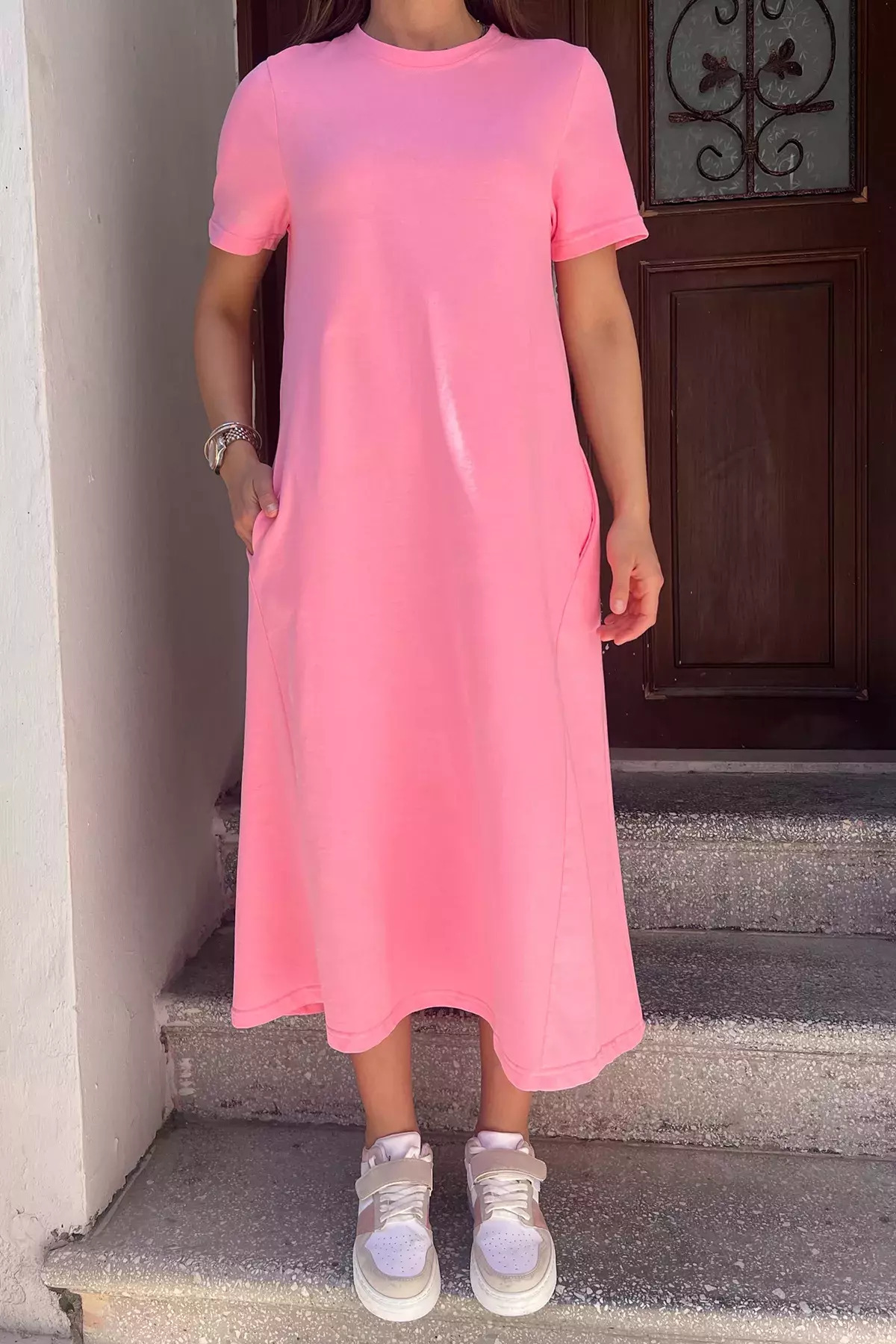 Pembe Bisiklet Yaka Cep Detaylı Kısa Kol Elbise Pembe Bisiklet Yaka Cep Detaylı Kısa Kol Elbise ZP-00009454 L