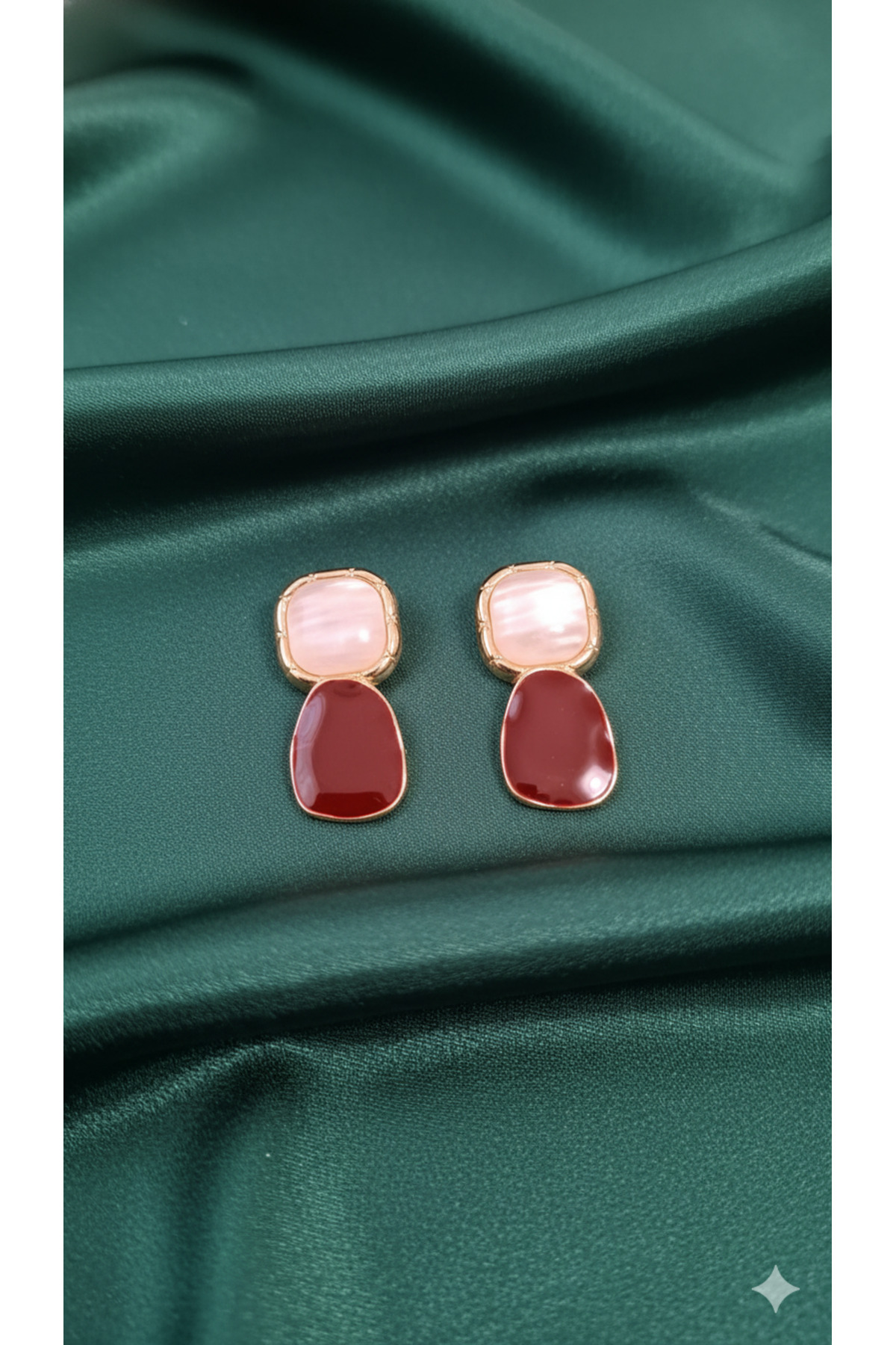 Rosélia El Yapımı Polimer Kil Küpe – Bordo ve İnci Pembe Renkli Zarif Model – Altın Detaylı Tasarım Rosélia El Yapımı Polimer Kil Küpe – Bordo ve İnci Pembe Renkli Zarif Model – Altın Detaylı Tasarım ROSELIA218 تک سایز