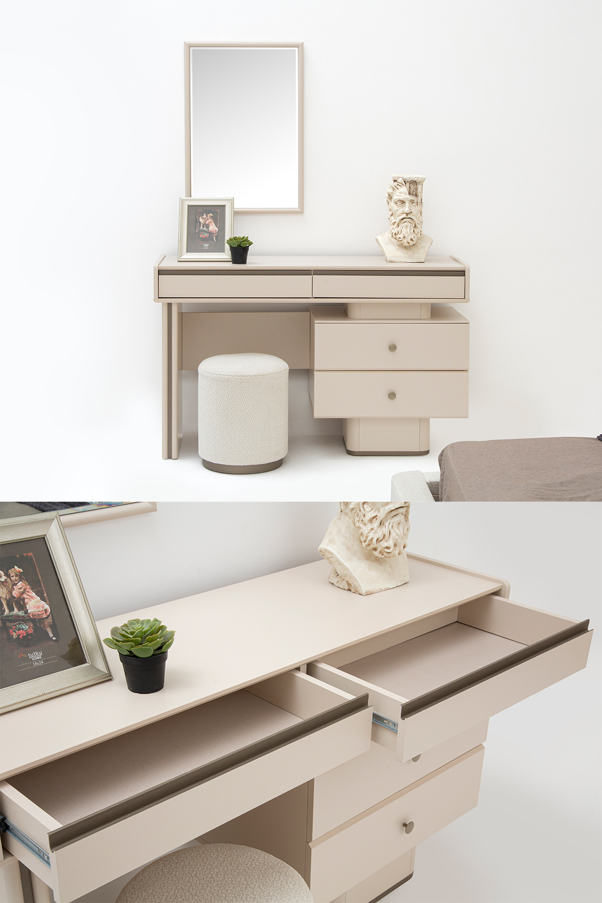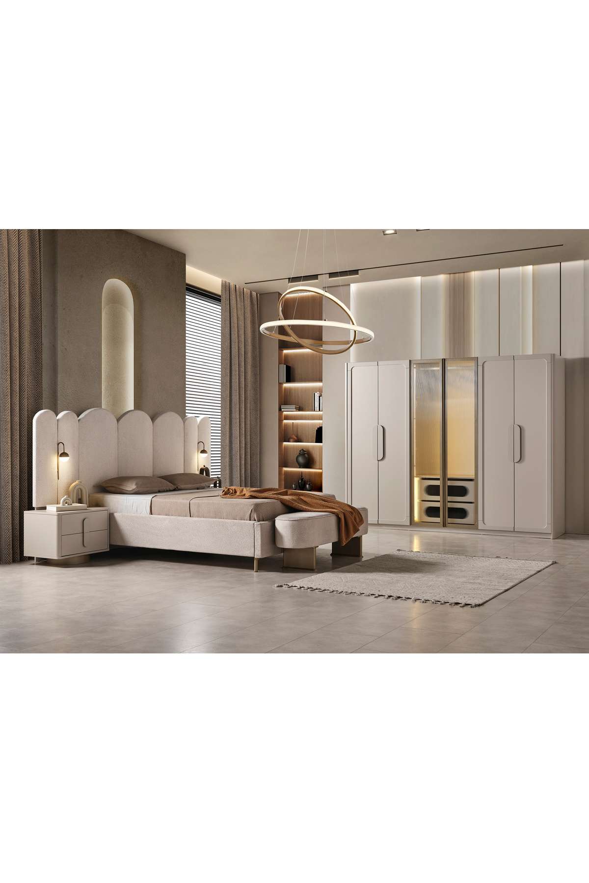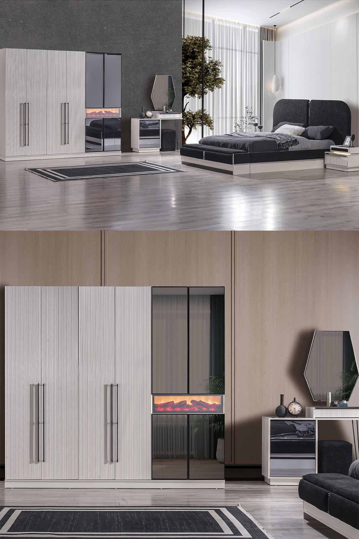 - تنظیم محتوا : Bazalı Karyola + 2 Komodin + Şifonyer + Gardırop