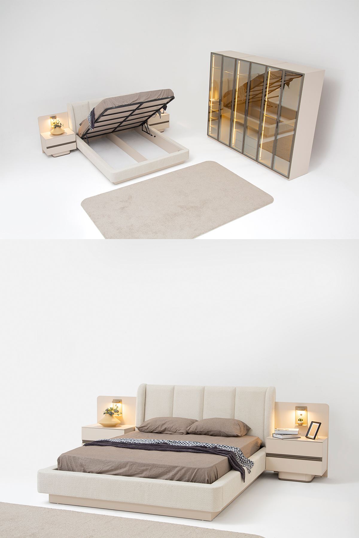 Lumera Cam Kapaklı Yatak Odası Takımı Lumera Cam Kapaklı Yatak Odası Takımı eymenselumerayatakodasicamkapak تک سایز