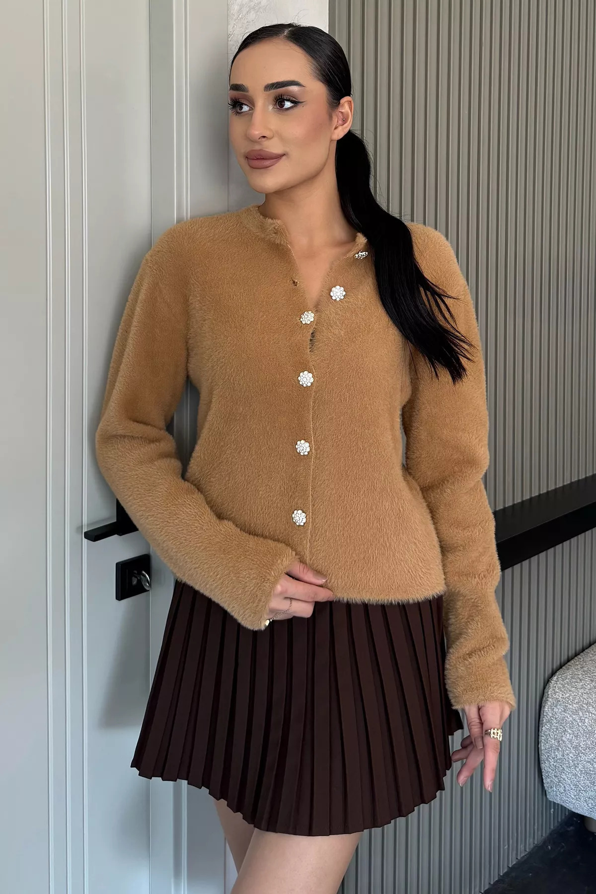 Kahve Yumoş İplik Kadın Sakallı Triko Ceket Kahve Yumoş İplik Kadın Sakallı Triko Ceket ZP-00013165 Standart
