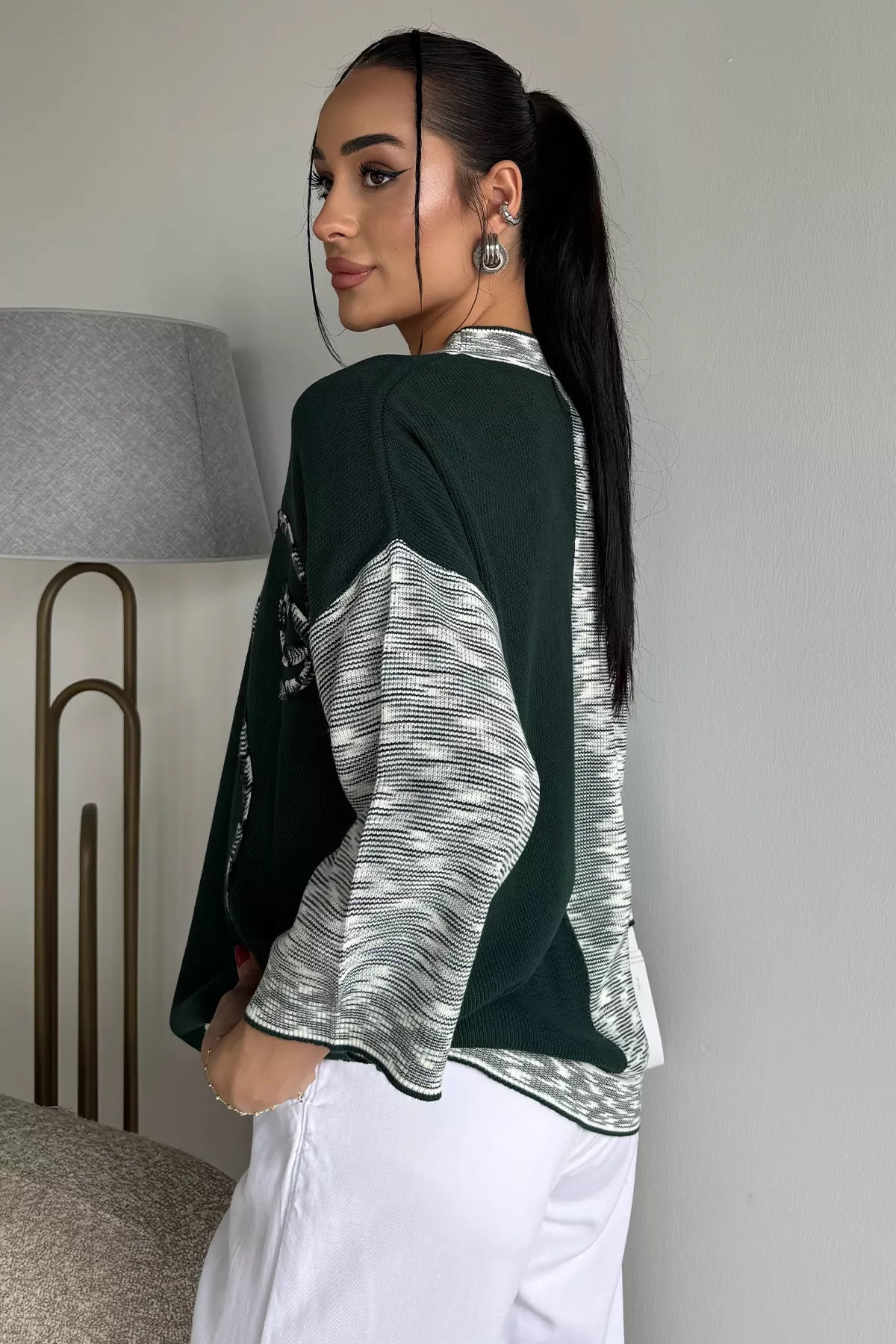 Zümrüt Yeşili Kadın Kendinden Desenli Triko Kazak Zümrüt Yeşili Kadın Kendinden Desenli Triko Kazak ZP-00013676 Standart