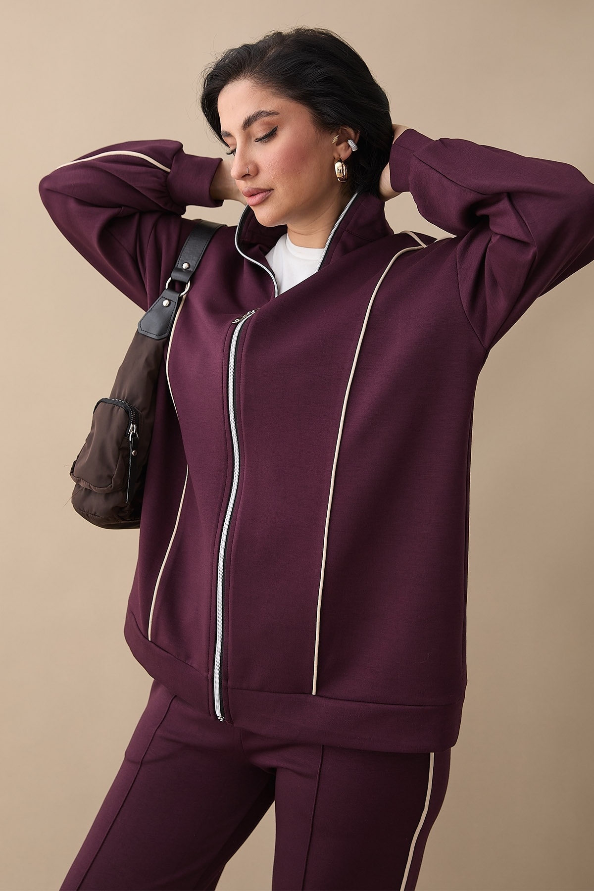 Çift Biyeli Fermuarlı Mor İkili Takım Çift Biyeli Fermuarlı Mor İkili Takım MS00AN1336 44