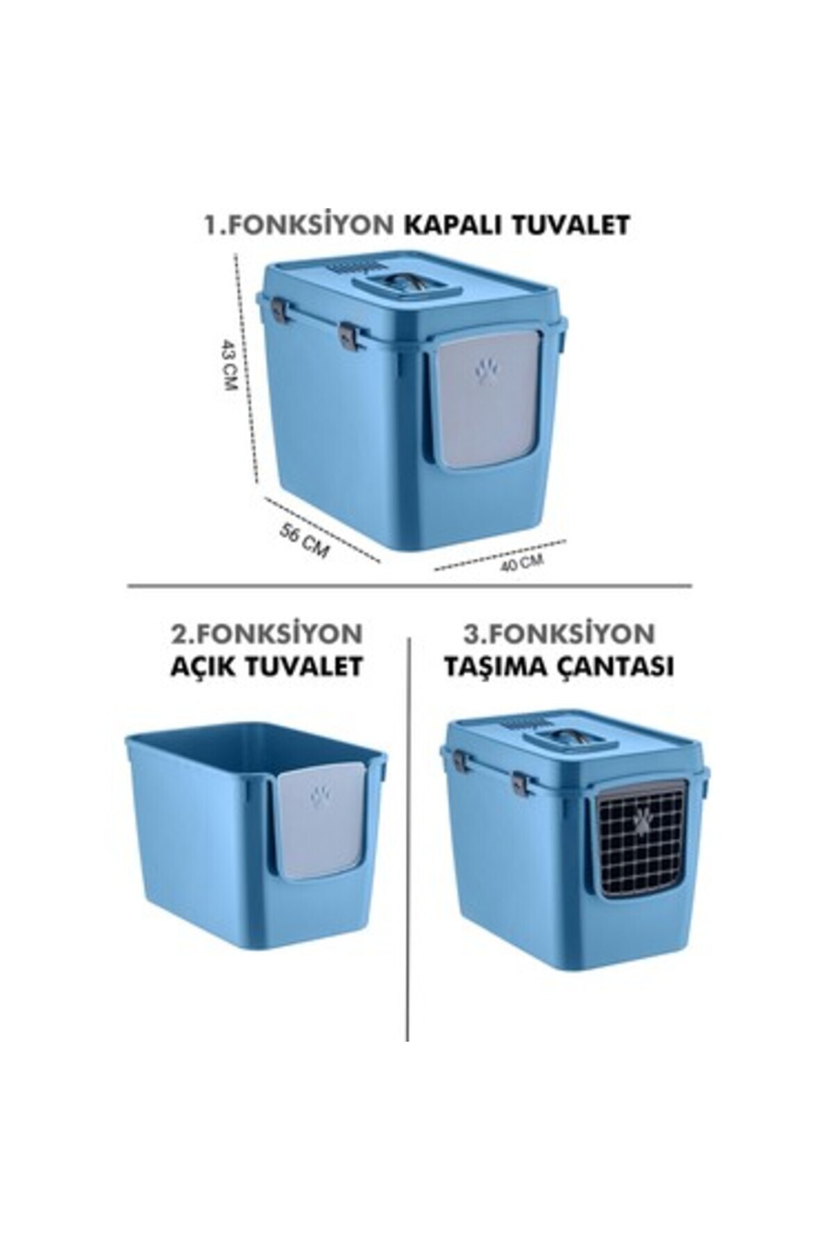 MASKOT ÜSTTEN KAPAKLI KAPALI KEDİ TUVALETİ VE TASIMA KAFESİ 3 FONSİYONLU MAVİ MASKOT ÜSTTEN KAPAKLI KAPALI KEDİ TUVALETİ VE TASIMA KAFESİ 3 FONSİYONLU MAVİ cs454645 تک سایز
