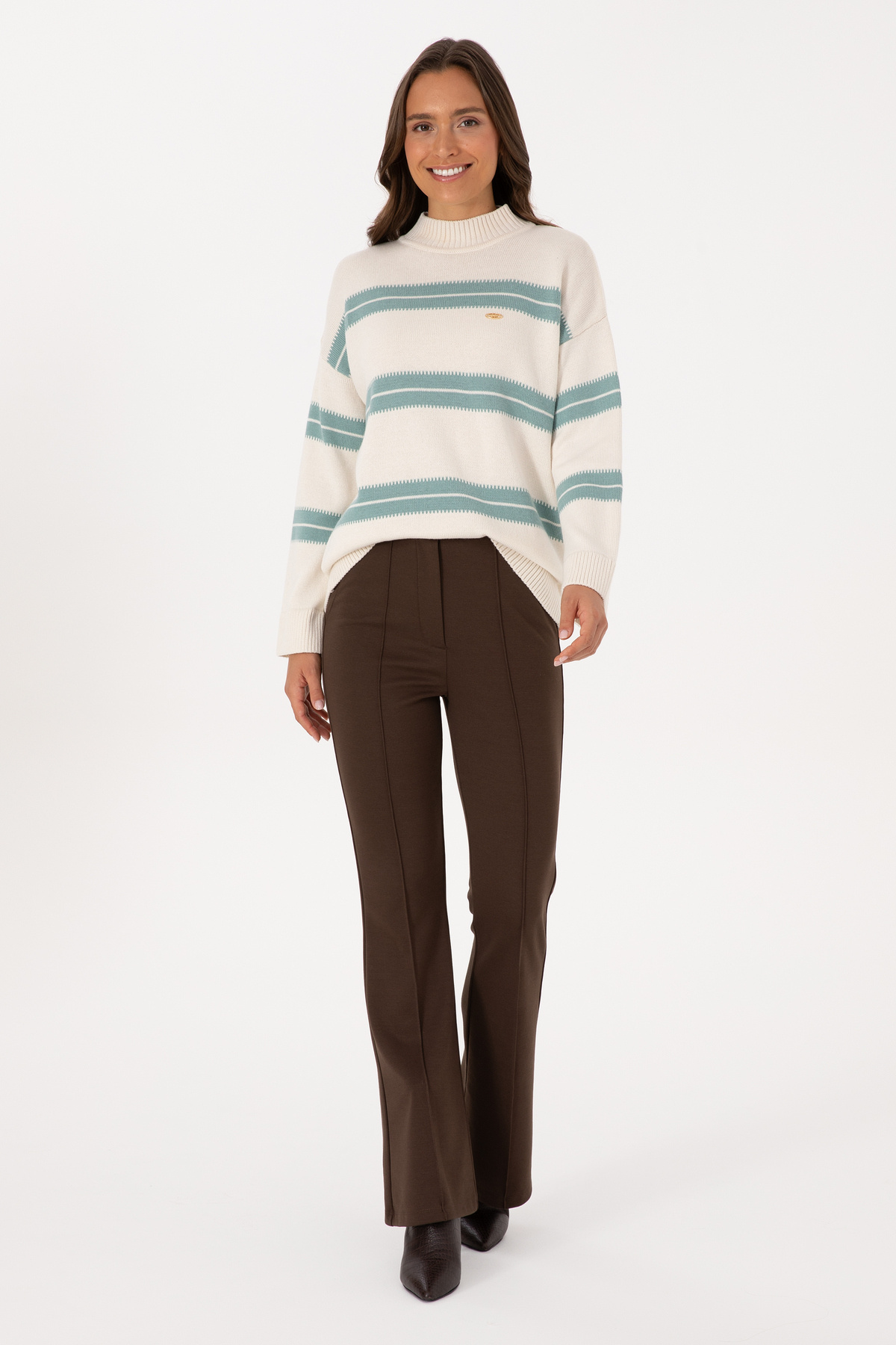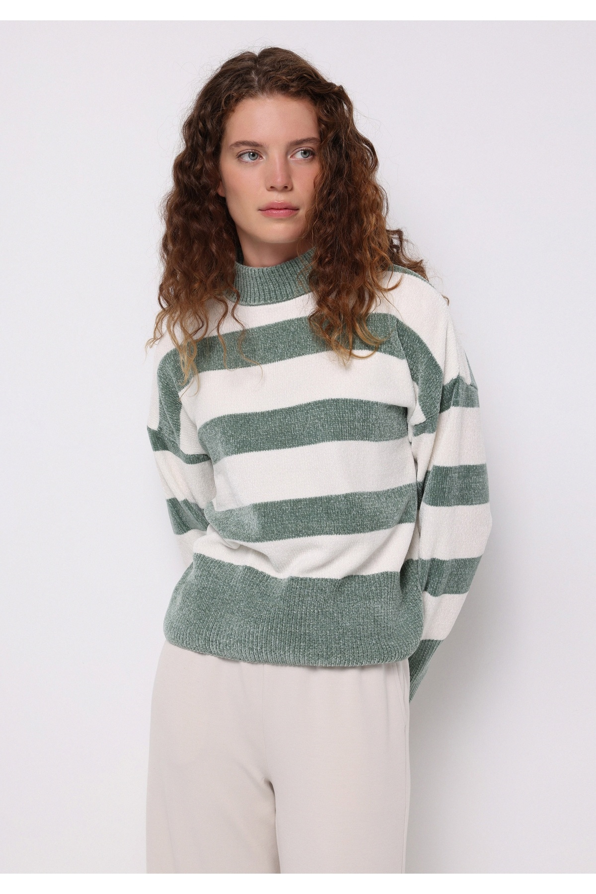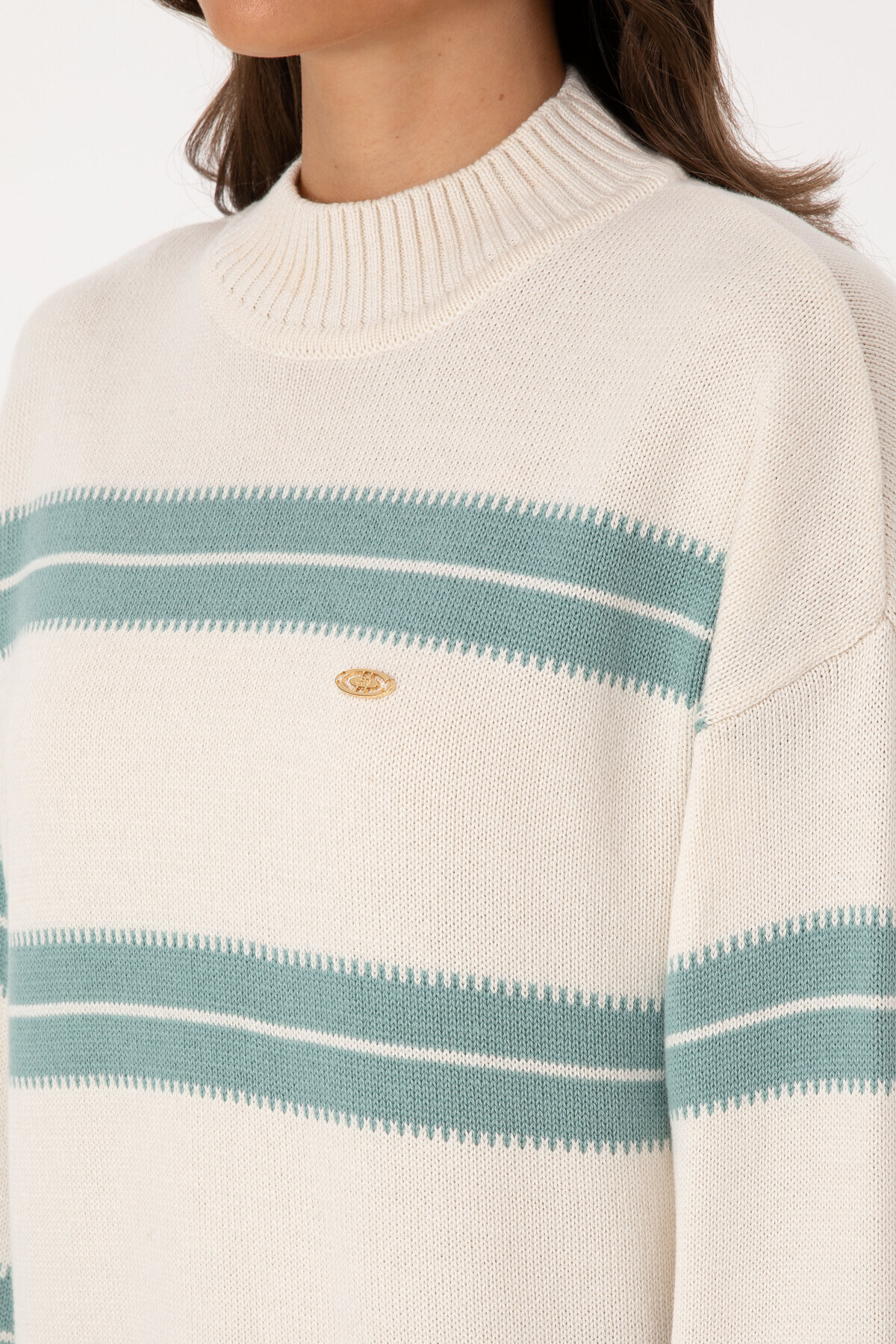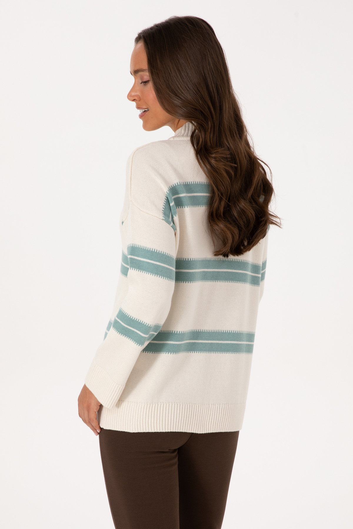 Kadın Krem Balıkçı Yaka Çizgili Kazak 50314666-VR071 Kadın Krem Balıkçı Yaka Çizgili Kazak 50314666-VR071 2XL