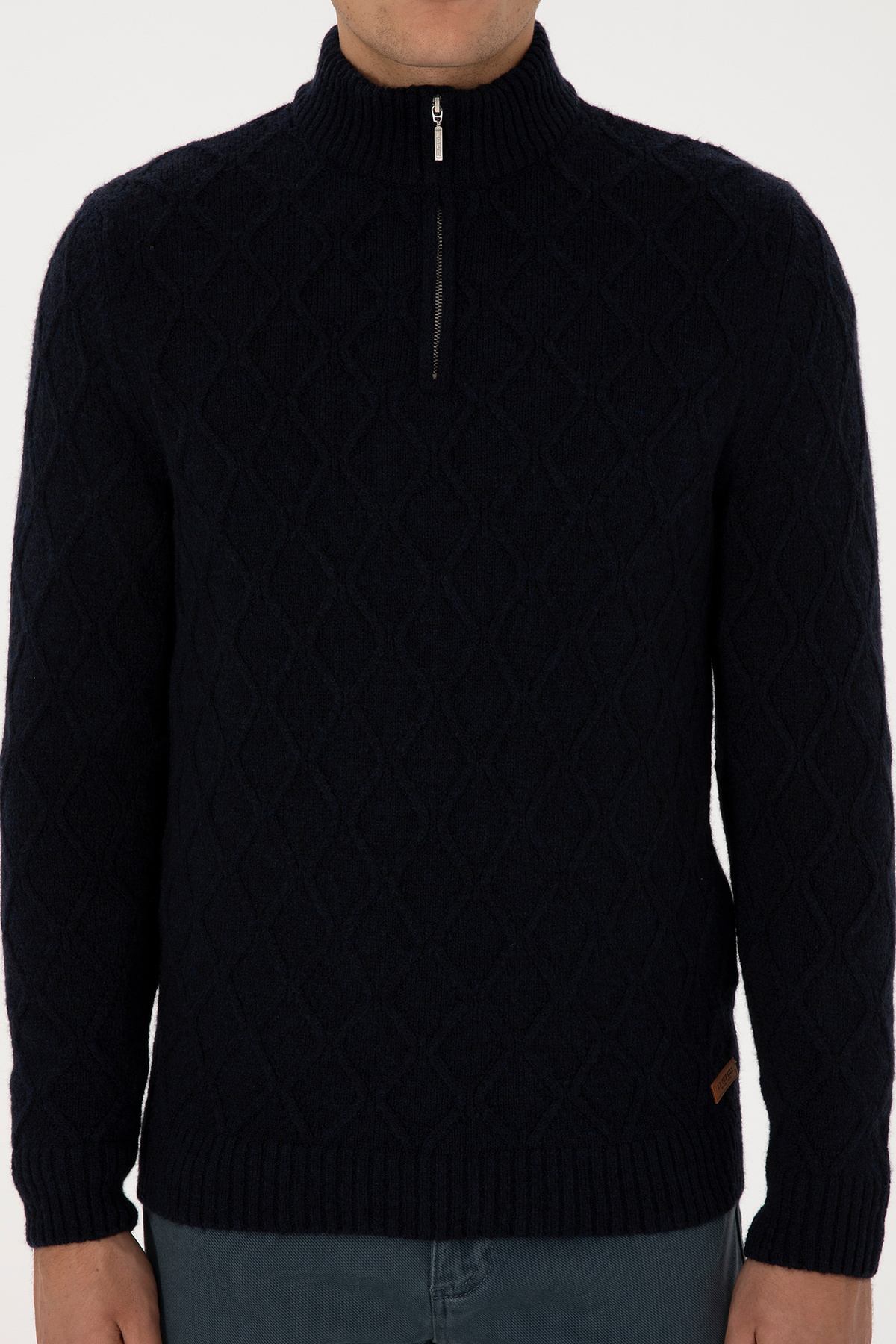 Erkek Regular Fit Yarım Fermuarlı Desenli Lacivert Kazak 50315035-VR033 Erkek Regular Fit Yarım Fermuarlı Desenli Lacivert Kazak 50315035-VR033 2XL