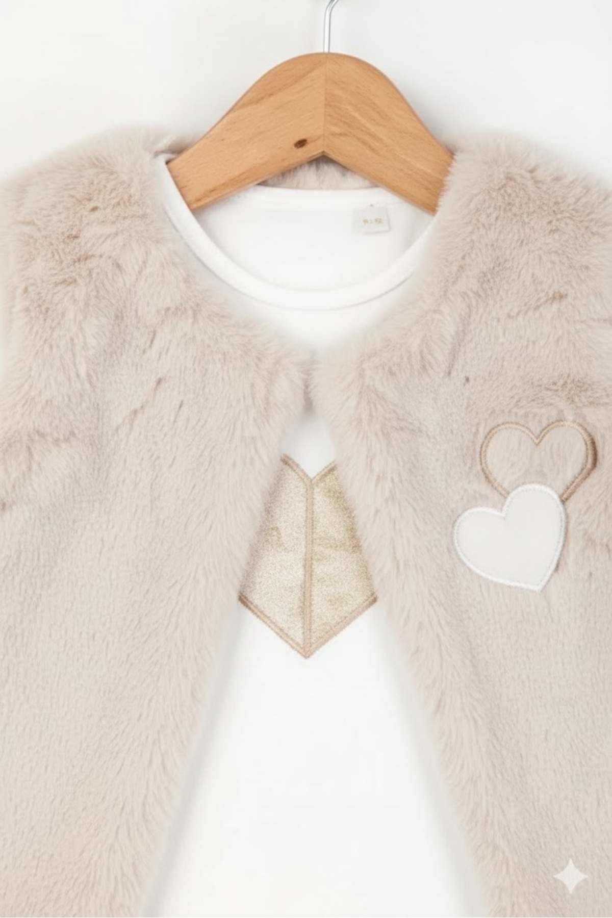 Bebek Kız Peluş Yelekli 3'lü Takım Kalpli Bluzlu Pantolonlu Set 1-2-3-4 YAŞ Bebek Kız Peluş Yelekli 3'lü Takım Kalpli Bluzlu Pantolonlu Set 1-2-3-4 YAŞ 7844 4 Yaş