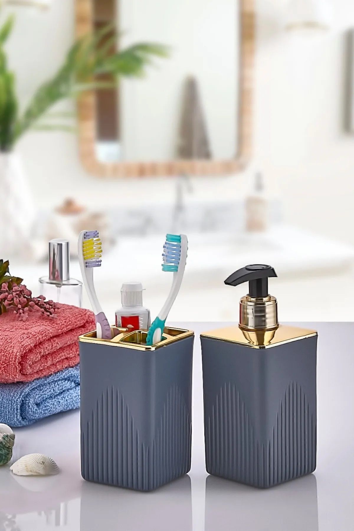 Minimalist Banyo Seti – Sıvı Sabunluk ve Diş Fırçalık | Modern Kare Tasarım DC-6778