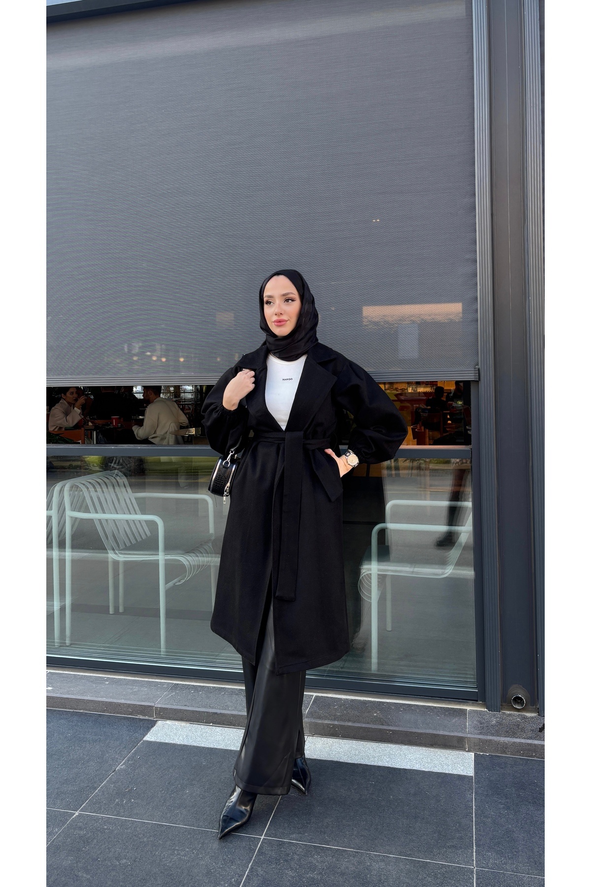 kaşe balon kol kol kaban kaşe balon kol kol kaban F-2025-9 S/M