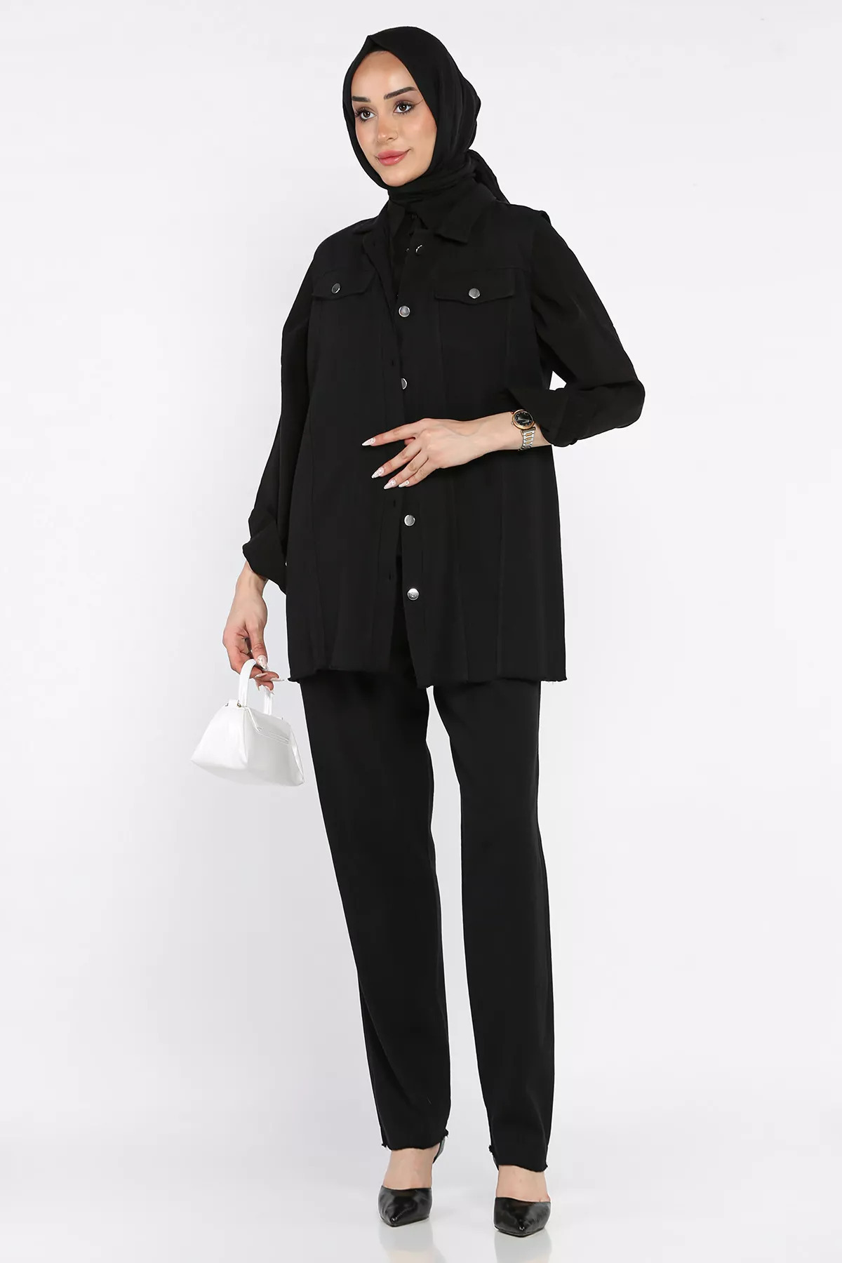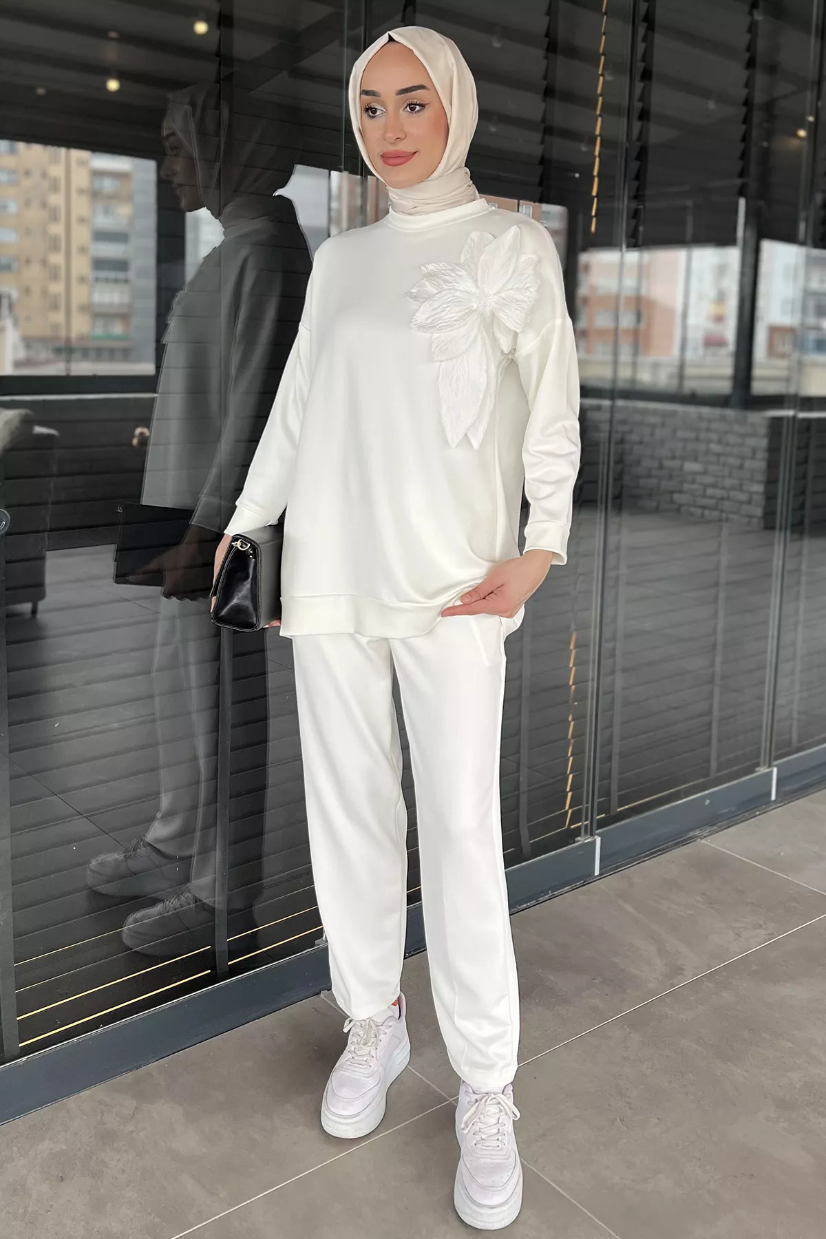 Beyaz Yaka Çiçek Detaylı Tunik Pantolon Tesettür İkili Takım Beyaz Yaka Çiçek Detaylı Tunik Pantolon Tesettür İkili Takım ZP-00015931 2XL