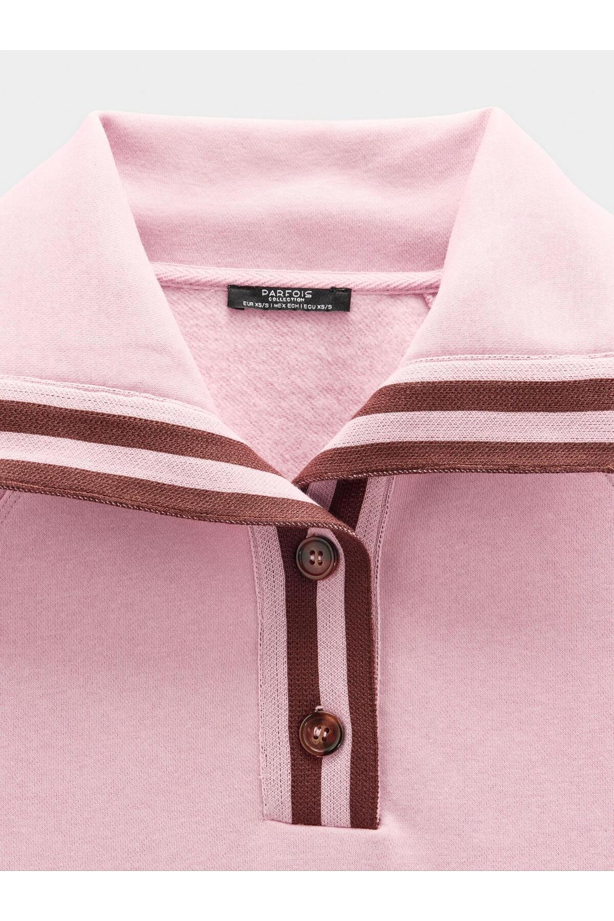 Polo Yakalı ve Çizgili Sweatshirt Polo Yakalı ve Çizgili Sweatshirt 241066 M/L