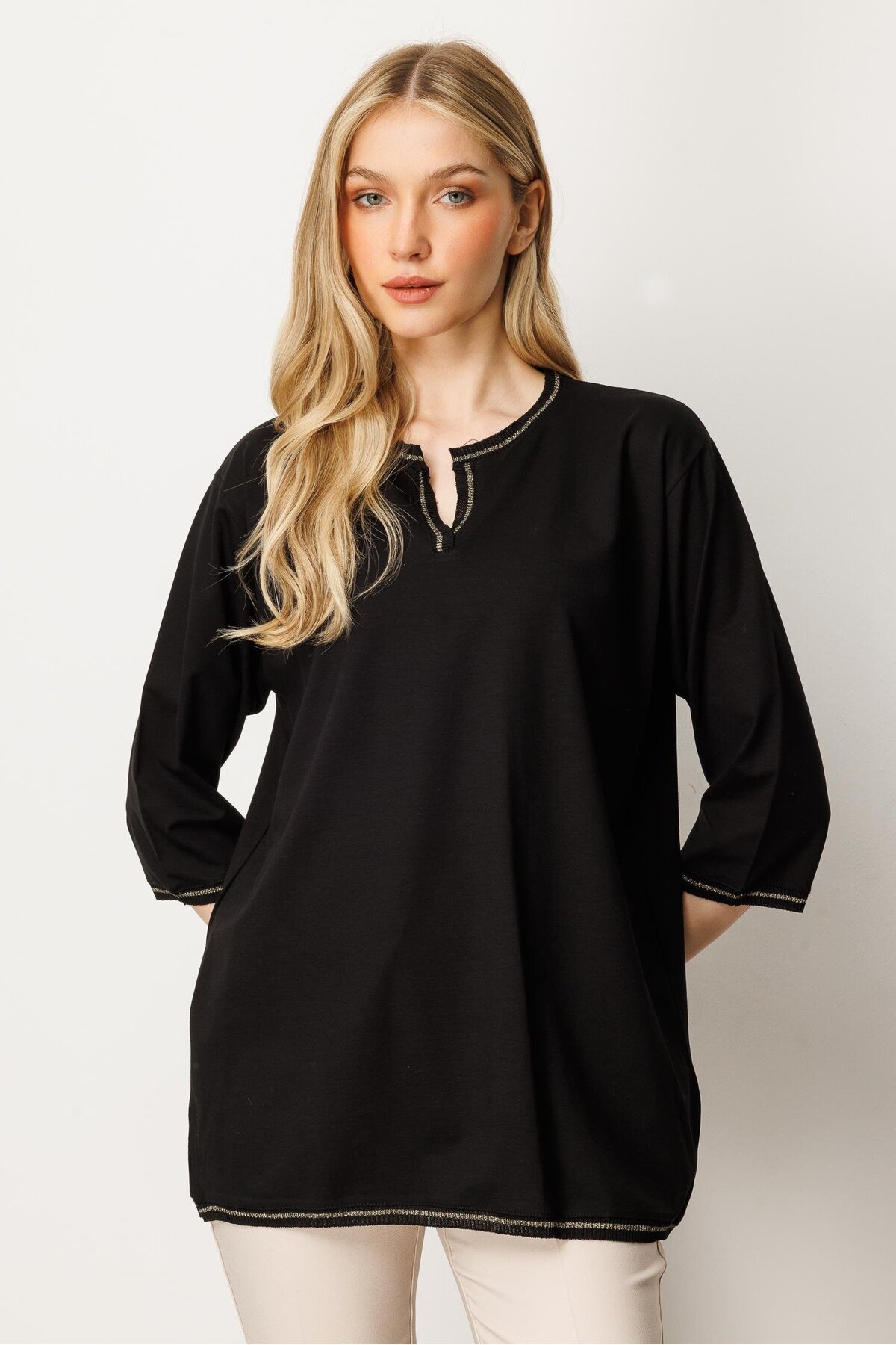 Kadın V Yaka Ribanalı Bluz Siyah 30402 Kadın V Yaka Ribanalı Bluz Siyah 30402 TYC400871DF01C42850D89100 XL